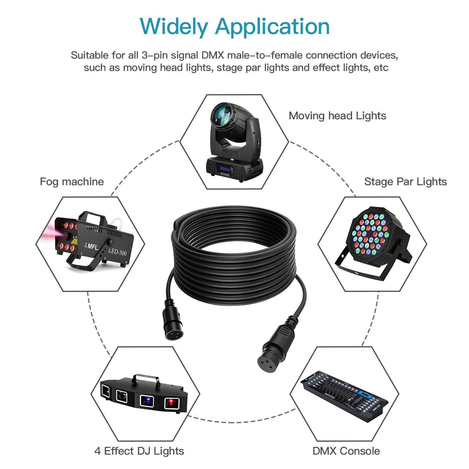 U'King 9.84ft/3m Flexible DMX Cable With 3pin Signal XLR Male To Female Connection Stage Light Cable Wire For Stage&DJ Lighting