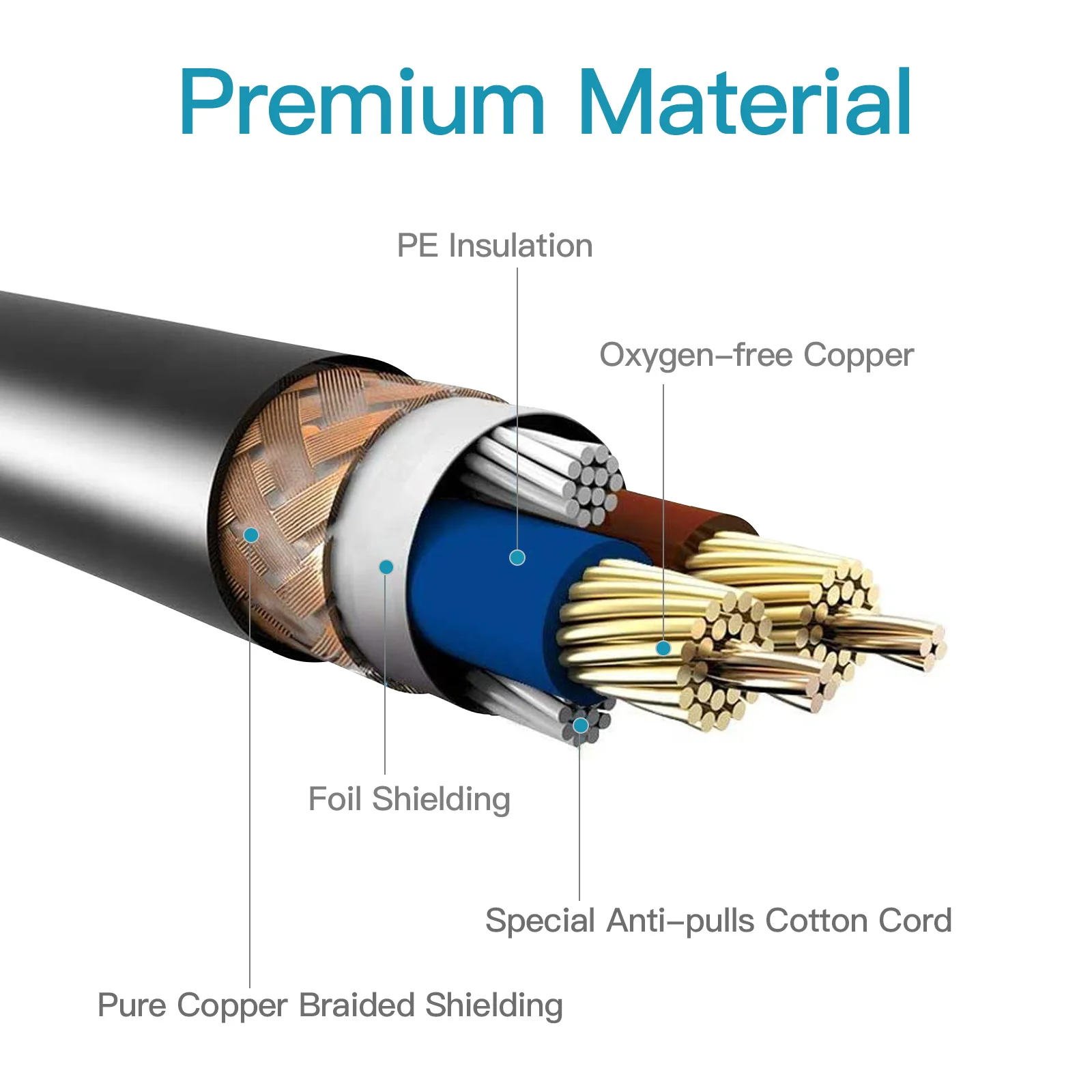 5. High-fidelity shielding design, soft and durable, ordinary wires will have unstable signal transmission and signal distortion. We use oxygen-free pure copper double shielding design to ensure full signal, large band amplitude, smooth transmission, and avoid signal loss defect.