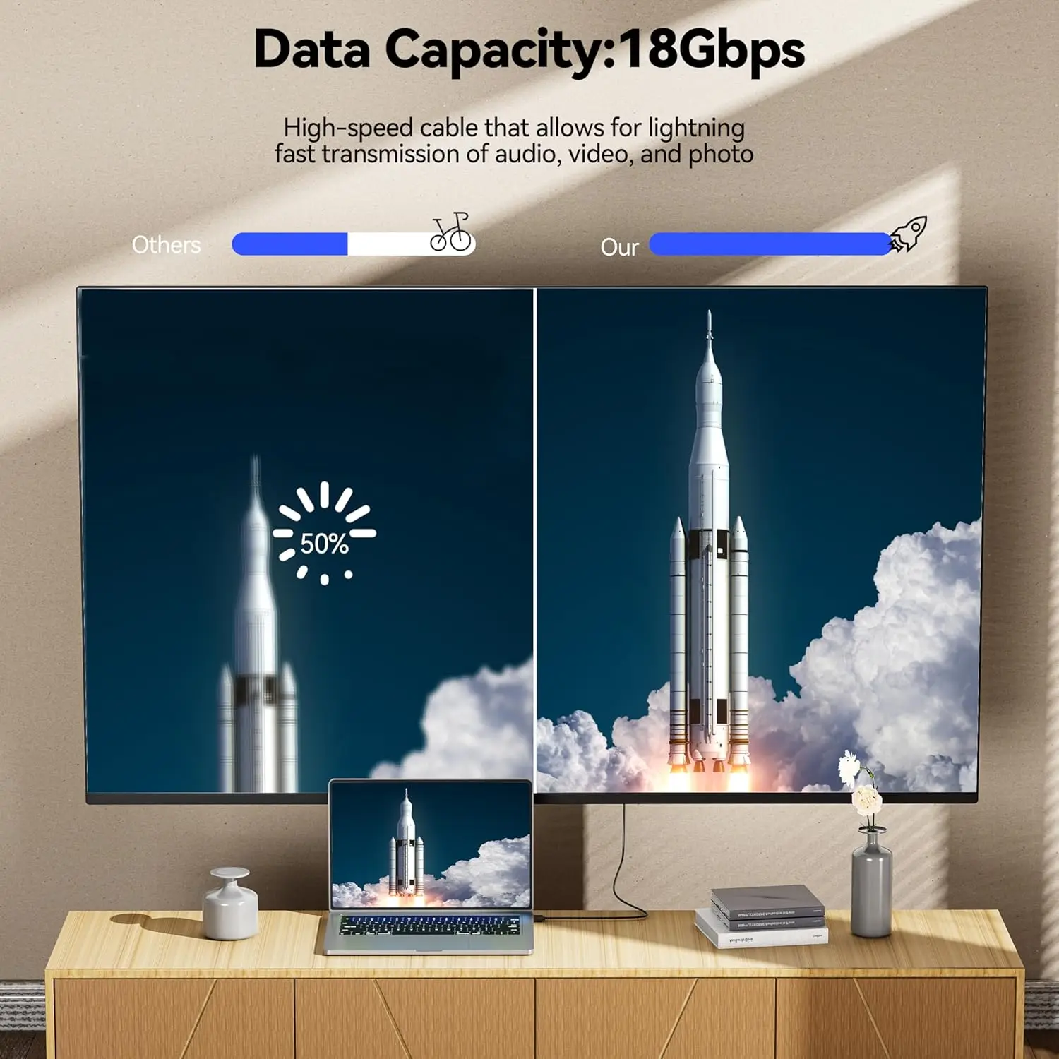 Cable DisplayPort 8K: el cable DisplayPort admite un ancho de banda de 32,4 Gbps, modo Mirror & Extend, Ultra HD 8K, Ultra HD 4K(2160P), QHD 2K(1440P), FHD 1080p, HD 720P, HDR de color profundo de 48 bits, 3D y conexión en caliente.