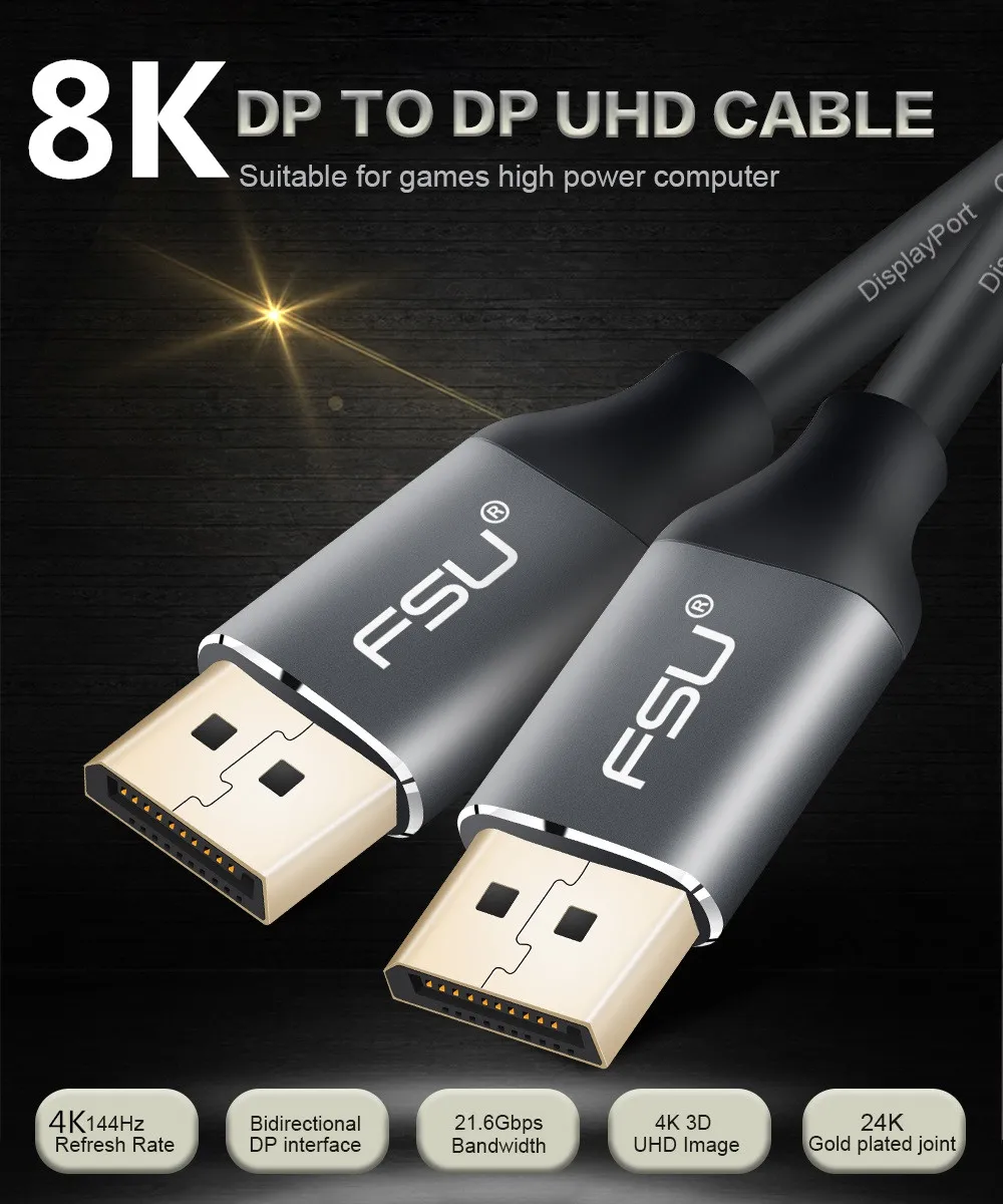 Comprar Cable DP 8K Displayport 1,4, 8K, 4K, HDR, 165Hz, 60Hz, Cable DP a DP para Samsung, vídeo, PC, ordenador portátil, TV DP 1,2