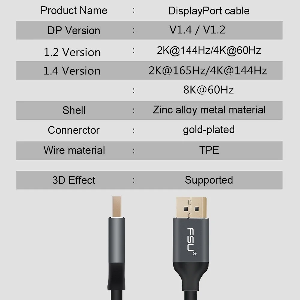 Comprar Cable DP 8K Displayport 1,4, 8K, 4K, HDR, 165Hz, 60Hz, Cable DP a DP para Samsung, vídeo, PC, ordenador portátil, TV DP 1,2
