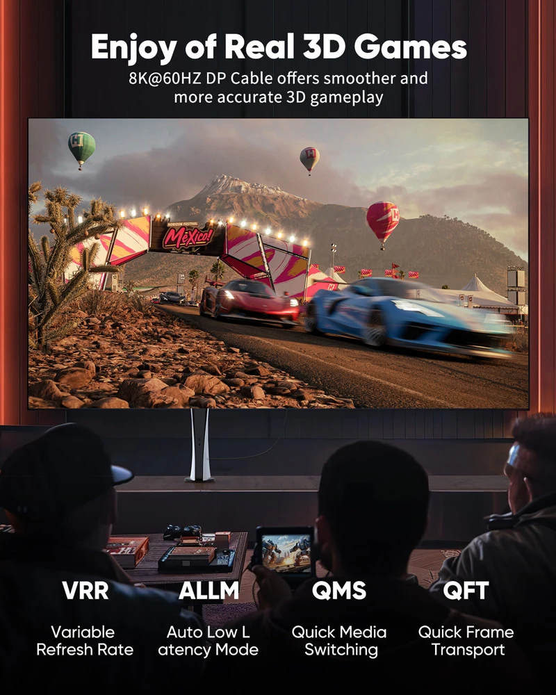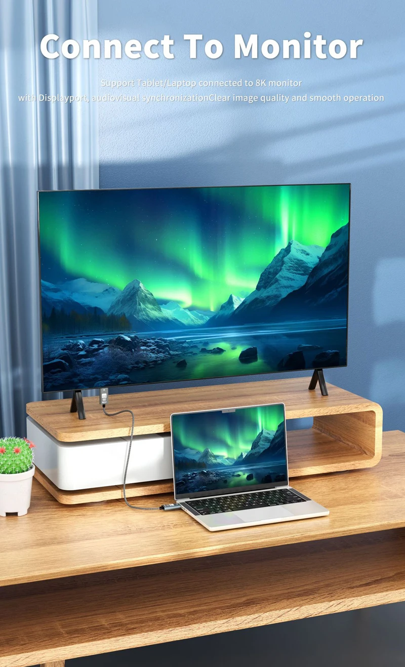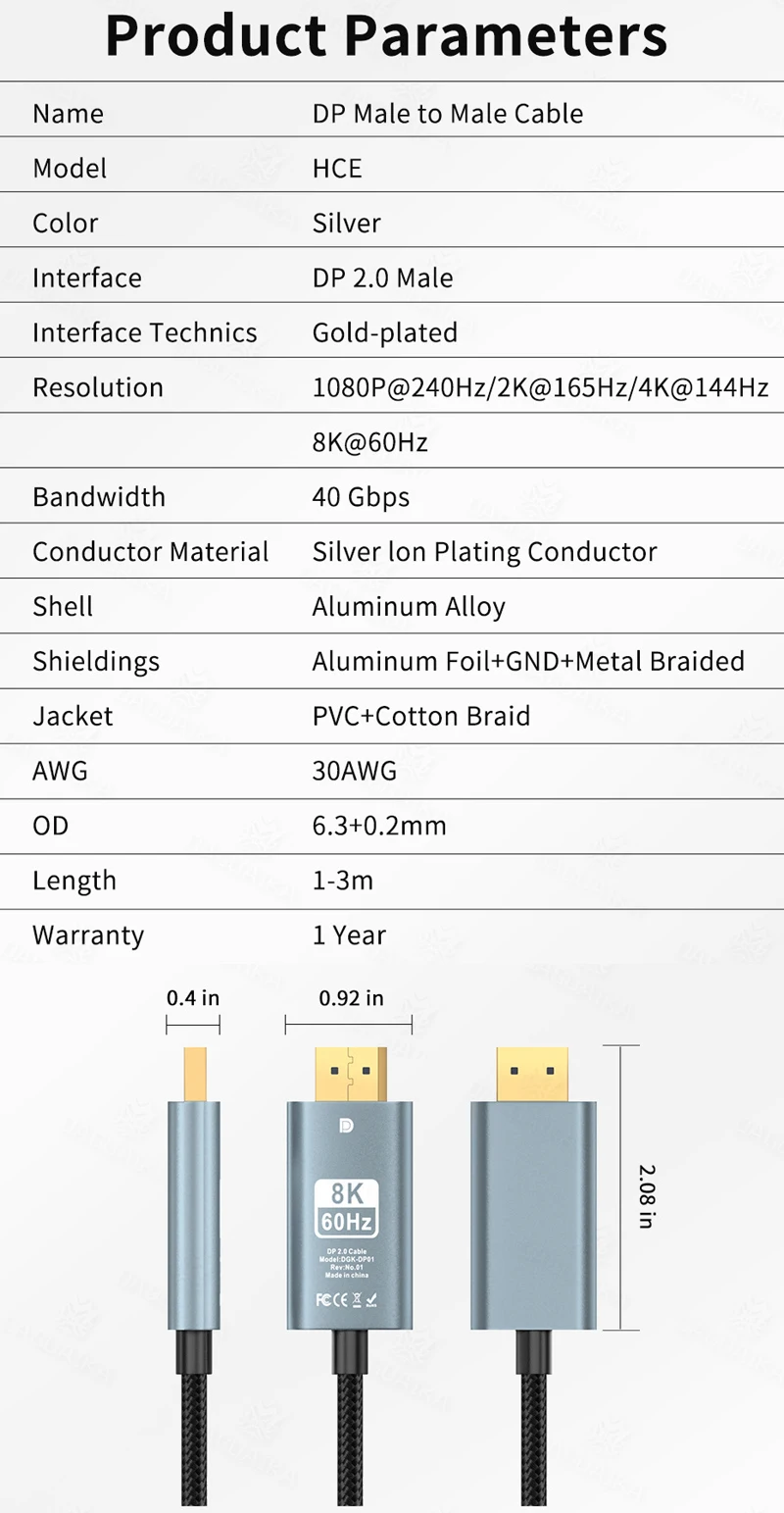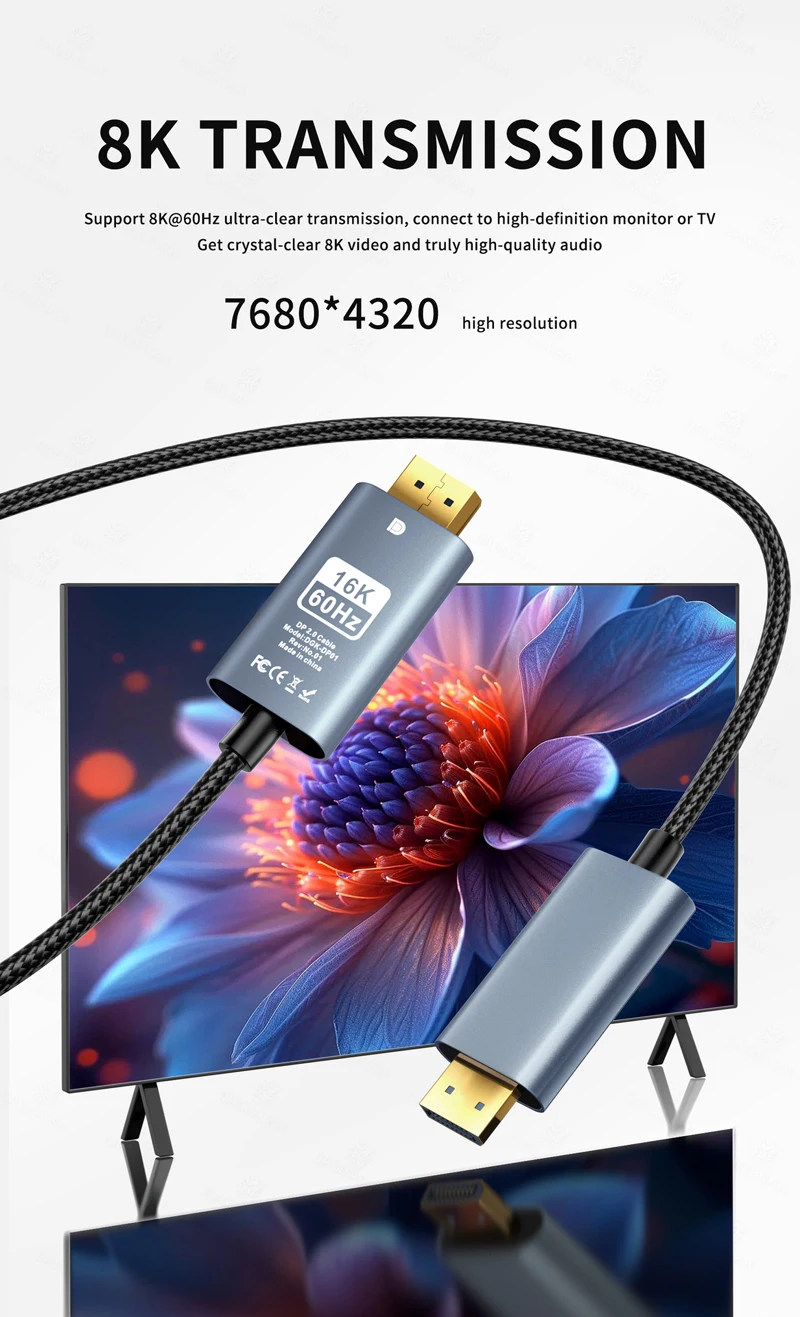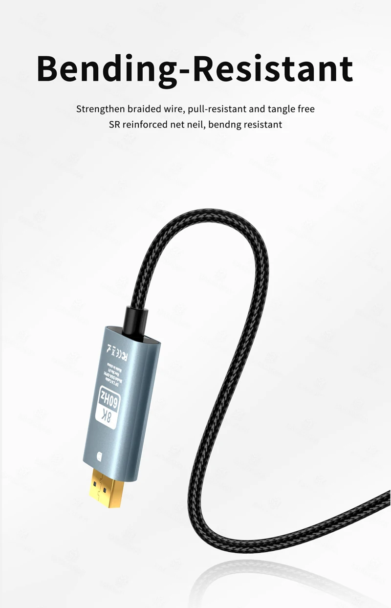 2M 8K DP Cable DisplayPort Cable 1,4/2,0 Puerto de pantalla de alta velocidad Cable 8K @ 60Hz 4K @ 144Hz 2K @ 240Hz 1080P HDR 10 32,4 Gbps