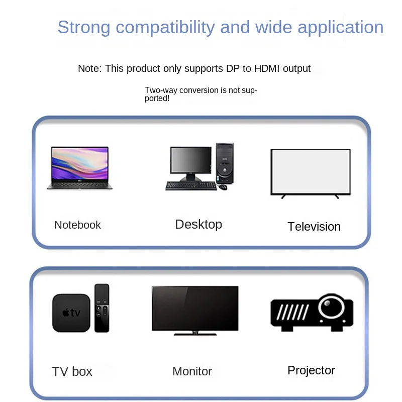 Displayport (DP) tipo público a HDMI- Compatible Tipo convertidor público, utilizado para la salida de video de varios dispositivos de visualización como monitores, proyectores, televisores, etc.