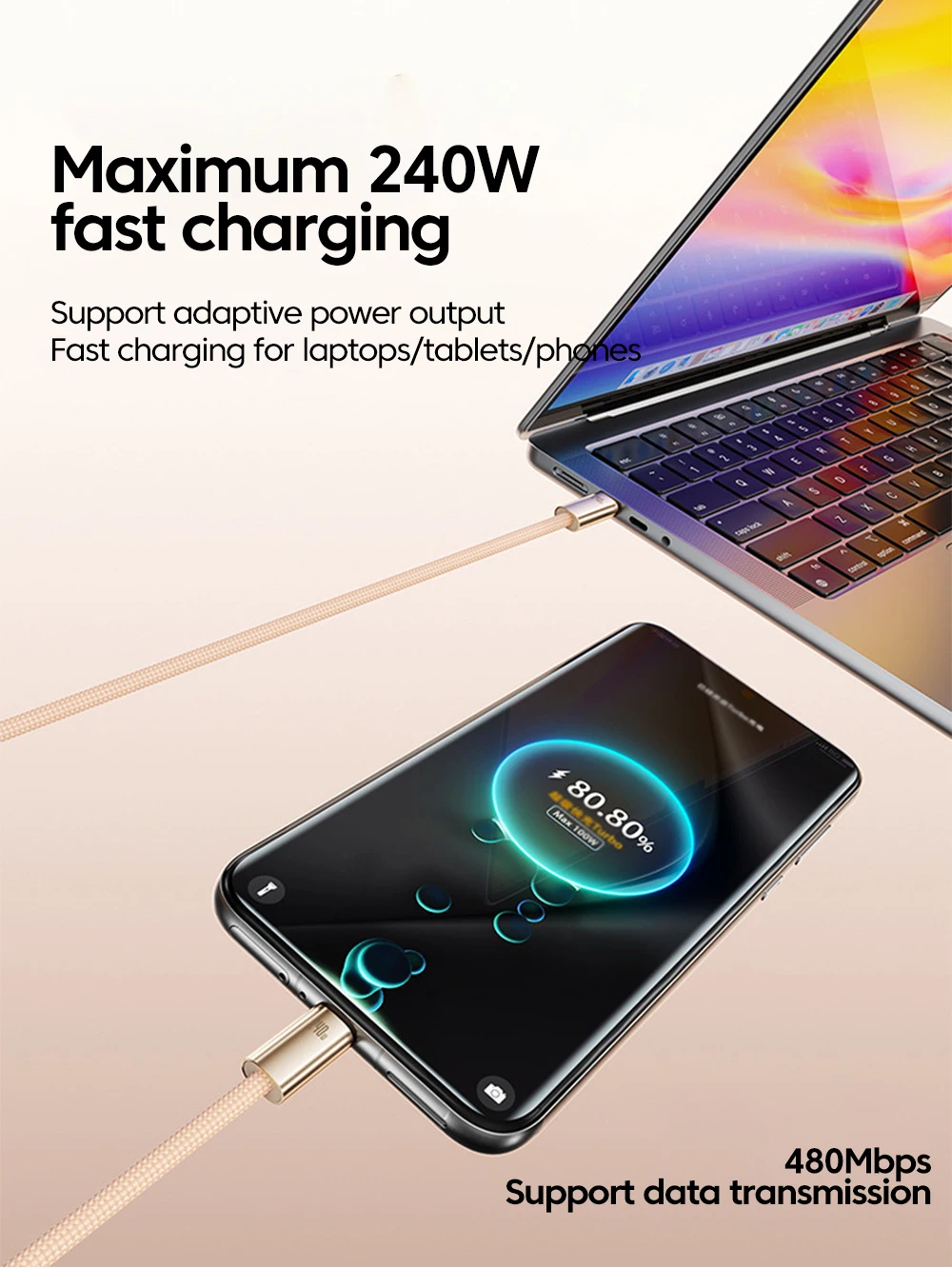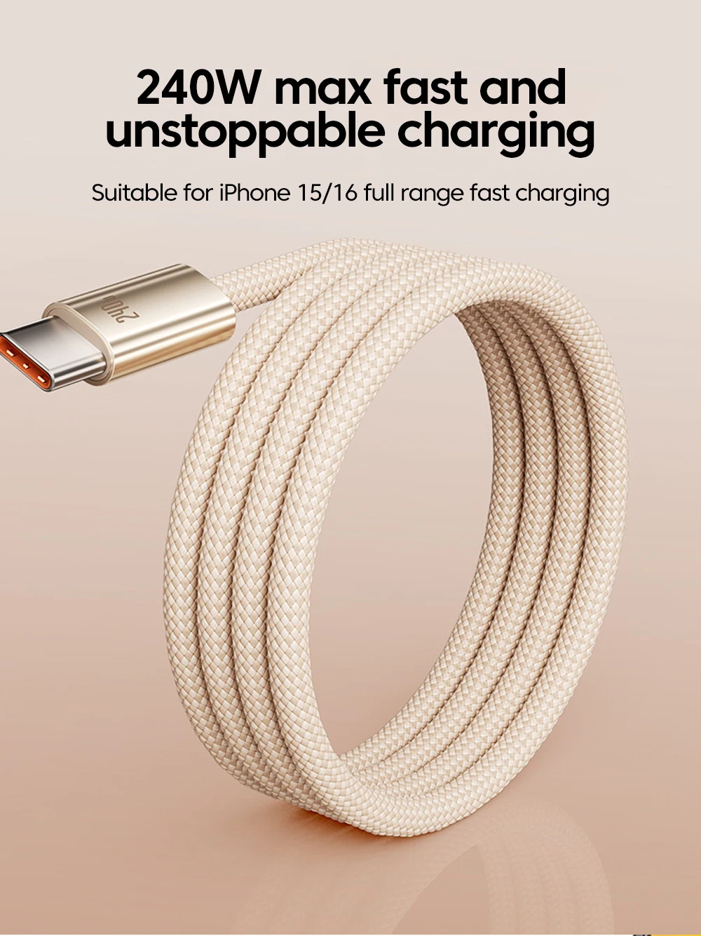 Cable Dual tipo C de 240W, Cable de carga rápida 5A tipo C a tipo C para iphone 15 16, Samsung, Huawei, Xiaomi, Cable PD de carga rápida