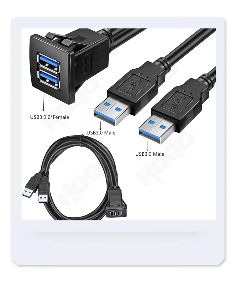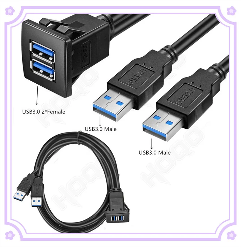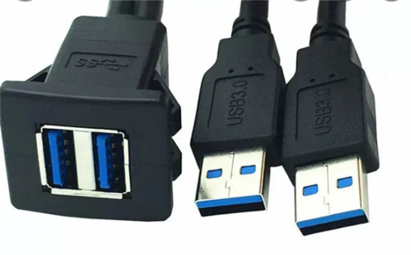 Dual USB3.0 USB2.0 macho a hembra Panel de montaje empotrado Cable de tablero blindado para coche motocicleta 1m 2M