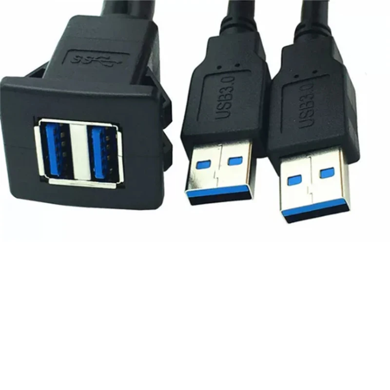 Dual USB3.0 USB2.0 macho a hembra Panel de montaje empotrado Cable de tablero blindado para coche motocicleta 1m 2M