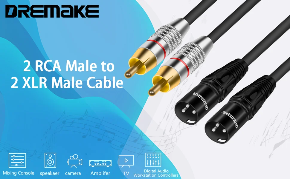 Comprar Cable Dual XLR macho a RCA macho 2 XLR a 2 RCA, Cable de Audio HiFi no equilibrado, Cable 4N OFC, para micrófono mezclador amplificador