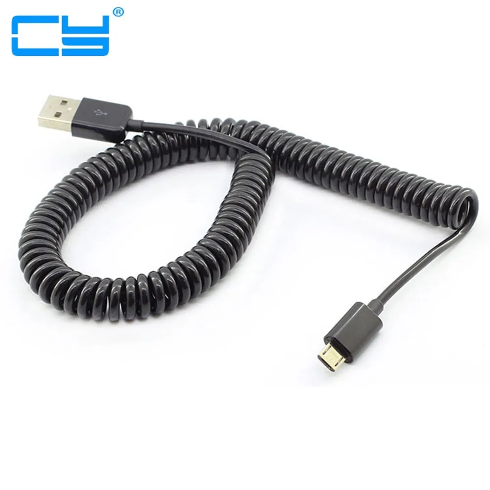 Comprar Cable elástico de cargador de sincronización de datos de 5 pines USB 2,0 macho a Micro USB con resorte de 2,5 m para teléfonos Samsung HTC LG