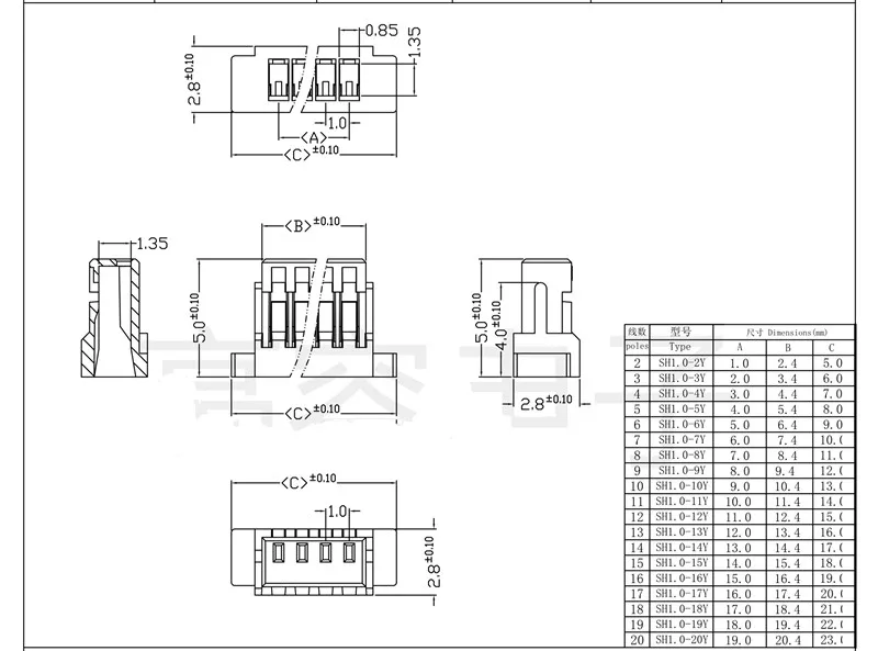 SH1.0-10P: Negro, rojo, blanco, amarillo, naranja, verde, azul, púrpura, marrón, gris