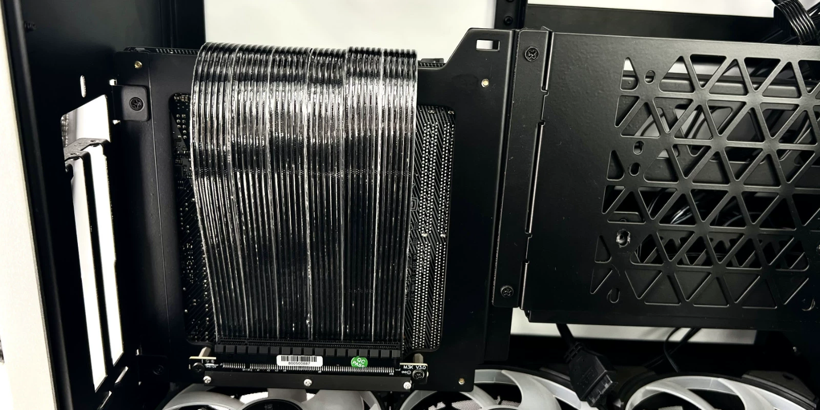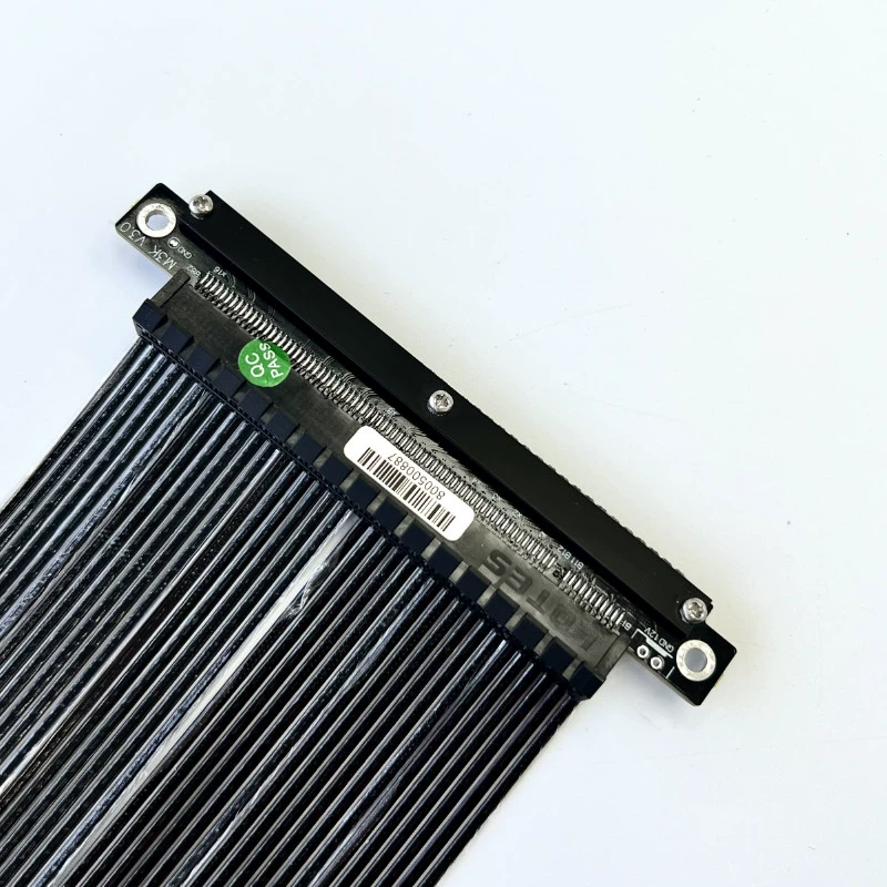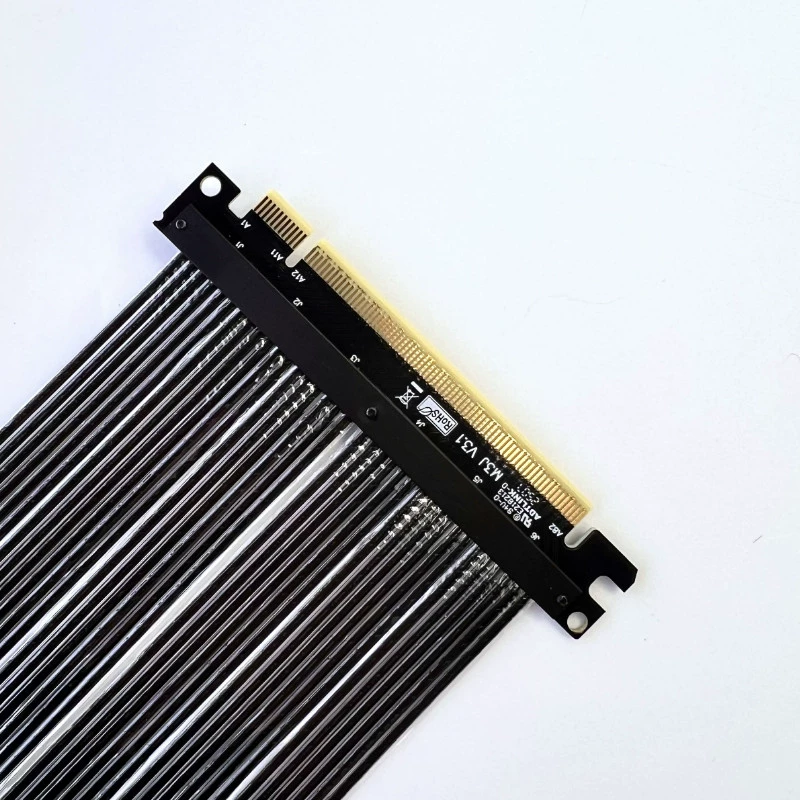 El cable es el cable exclusivo PCIe Gen5 de ADT, el cable plateado Gen4 es de 1,4 mm, mientras que el cable Gen5 es más delgado, solo 0,96 mm, y el cable se puede doblar a voluntad sin afectar el uso.