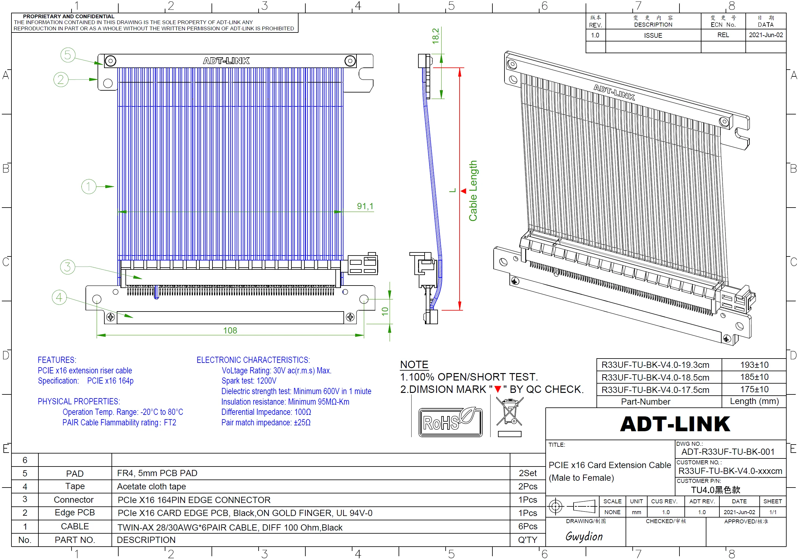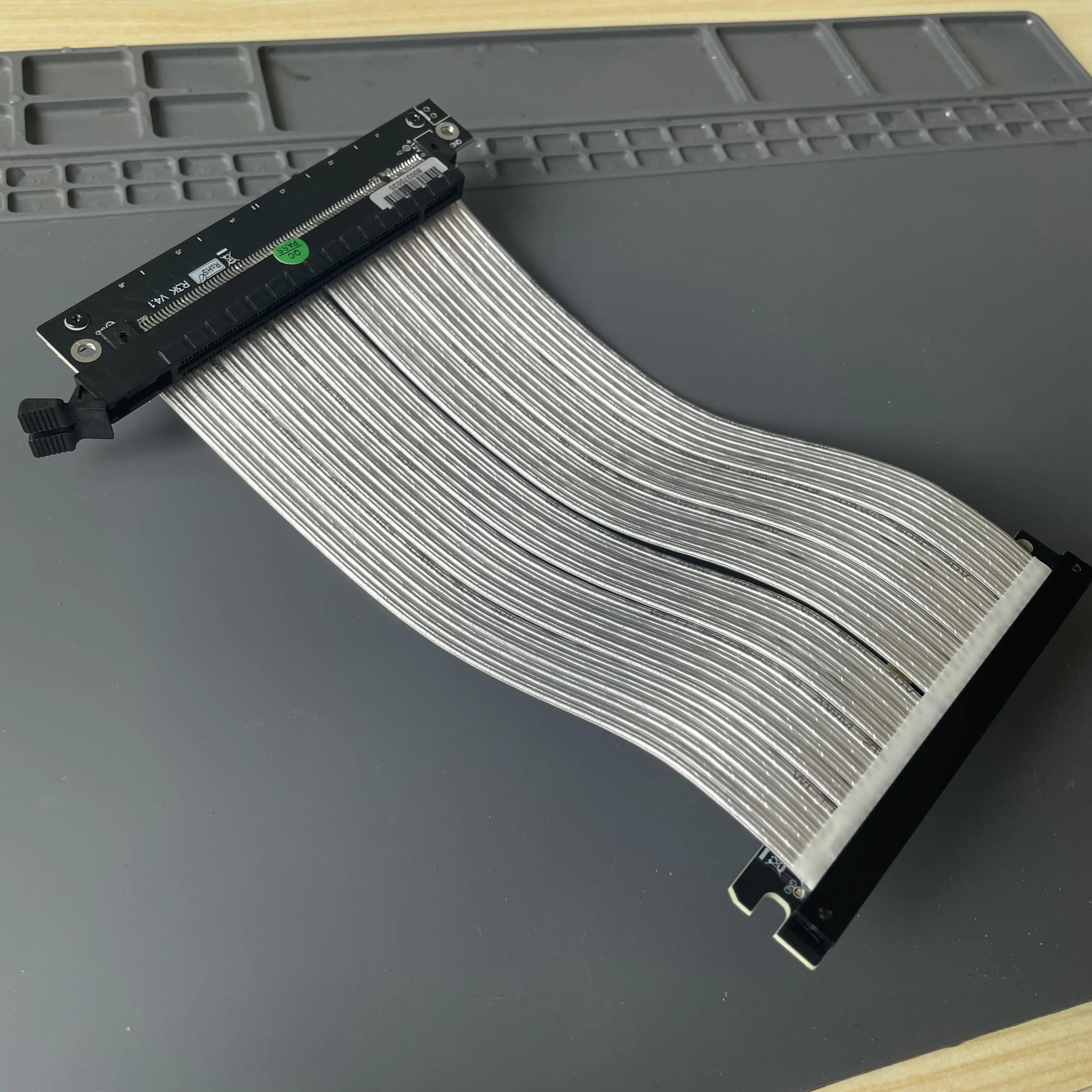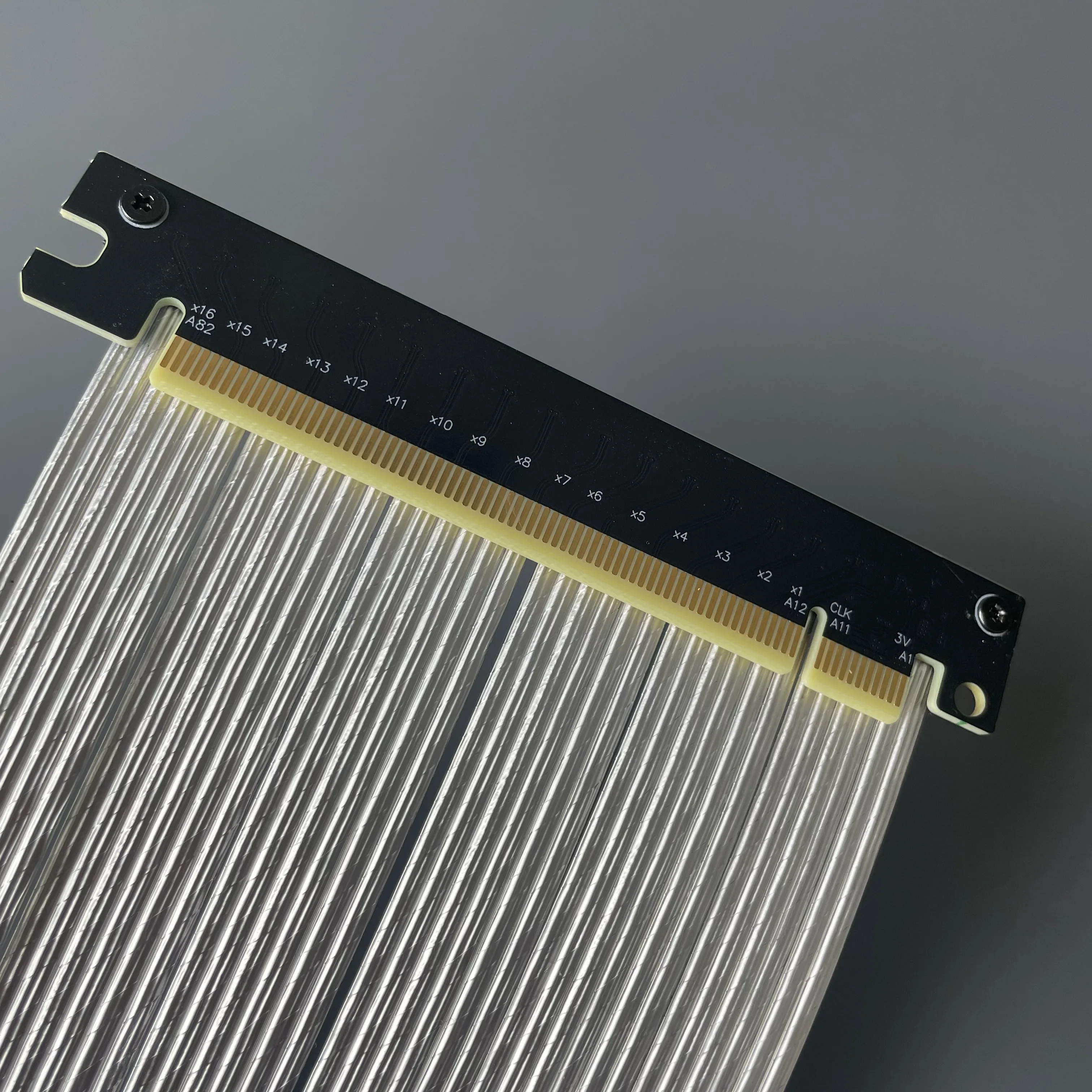 El cable es el cable ADT PCIe de cuarta generación. El grosor del modelo negro es de 1,3mm y el grosor del modelo plateado es de 1,4mm. El cable se puede doblar y plegar, lo que no afecta el uso.