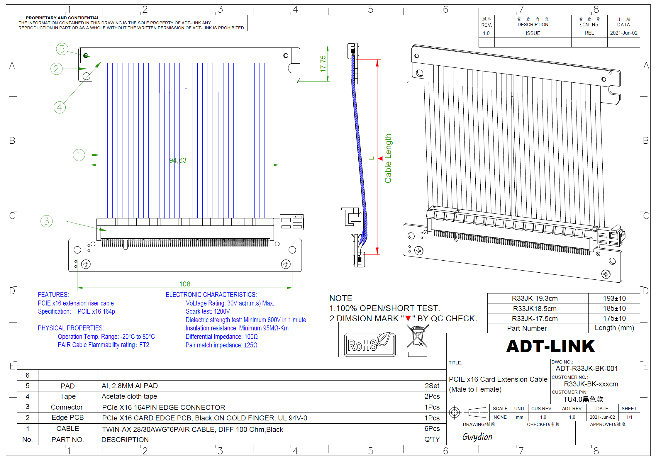 La placa PCB del modelo dual-reverse 4,0 es relativamente alta. Si actualiza el cable de extensión de la versión anterior comprada antes de 2021, la longitud del cable debe aumentarse en aproximadamente 0,5 cm ~ 1cm. La Longitud del cable debe ser superior a 19cm
