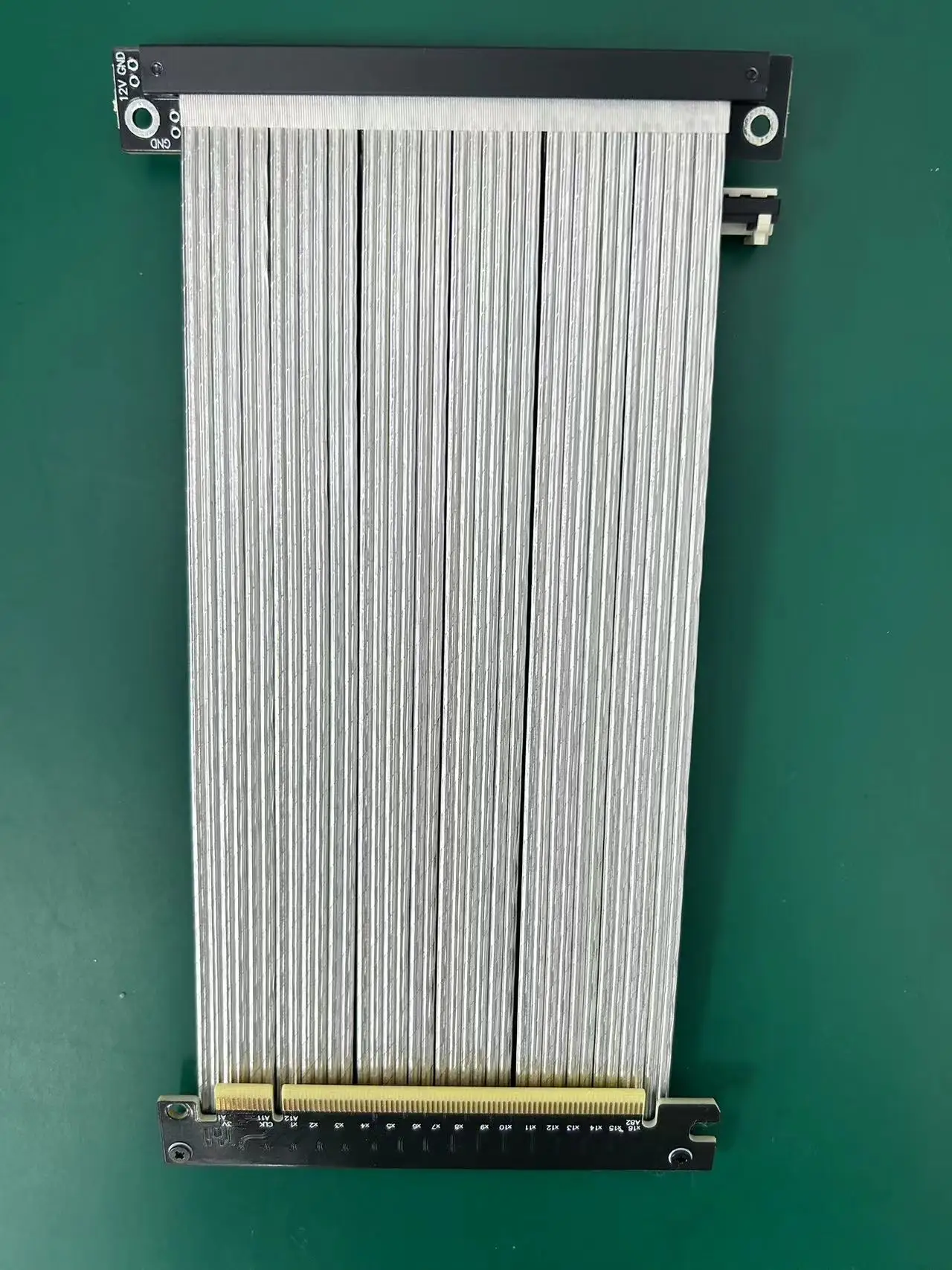El cable es el cable dedicado PCIe de cuarta generación de ADT. El grosor del cable negro es de 1,3mm y el grosor del cable plateado es de 1,4mm. El cable se puede doblar o plegar, lo que no afecta el uso.