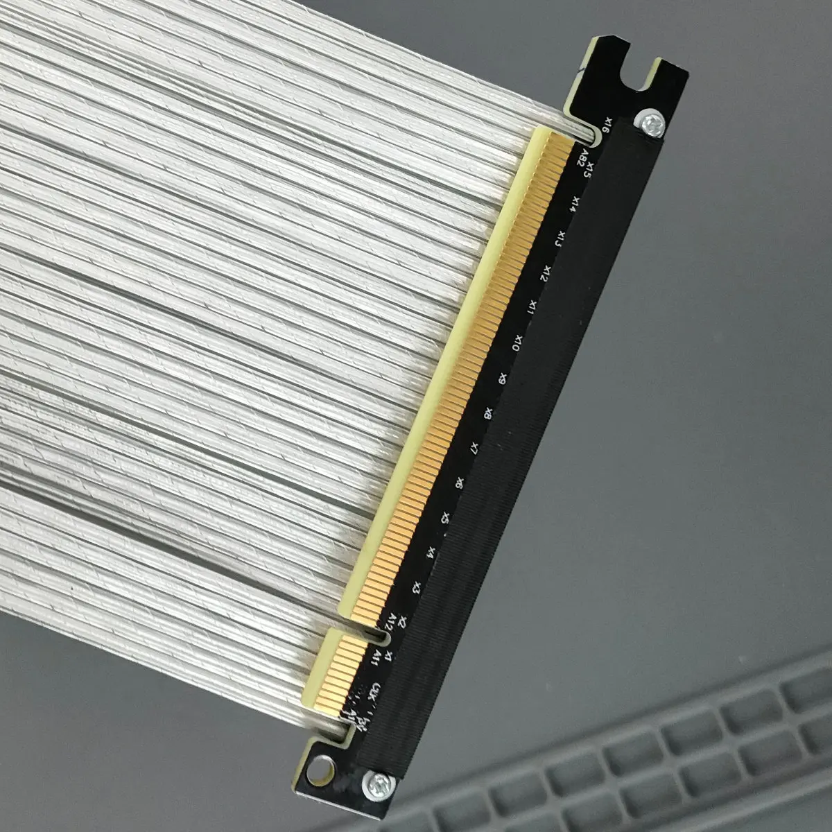 El cable es el cable dedicado PCIe de cuarta generación de ADT. El grosor del cable negro es de 1,3mm y el grosor del cable plateado es de 1,4mm. El cable se puede doblar o plegar, lo que no afecta el uso.