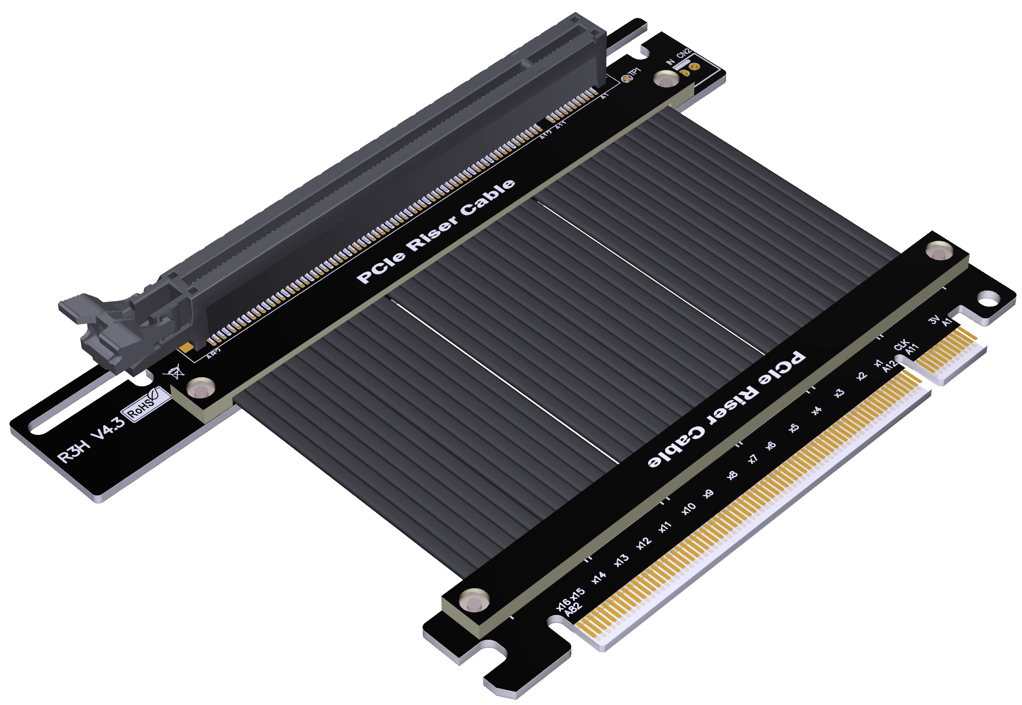 ModelosDescripcionesAncho de bandaR33UF-BK/SI-3.0X16 3,0 180 grados ángulo plano color negro/plata(2021 nuevo tipo)PCIe 3,0x16R33UL-BK-3.0X16 3,0 90 grados ángulo recto color negro(2021 nuevo tipo)PCIe 3,0x16R33UH-BK-3.0X16 3,0 Tipo universal Color negro(2021 nuevo tipo)PCIe 3,0x16Restricción de montaje: el cable de extensión solo se puede montar en la ranura PCIe x16 más cercana a la CPU