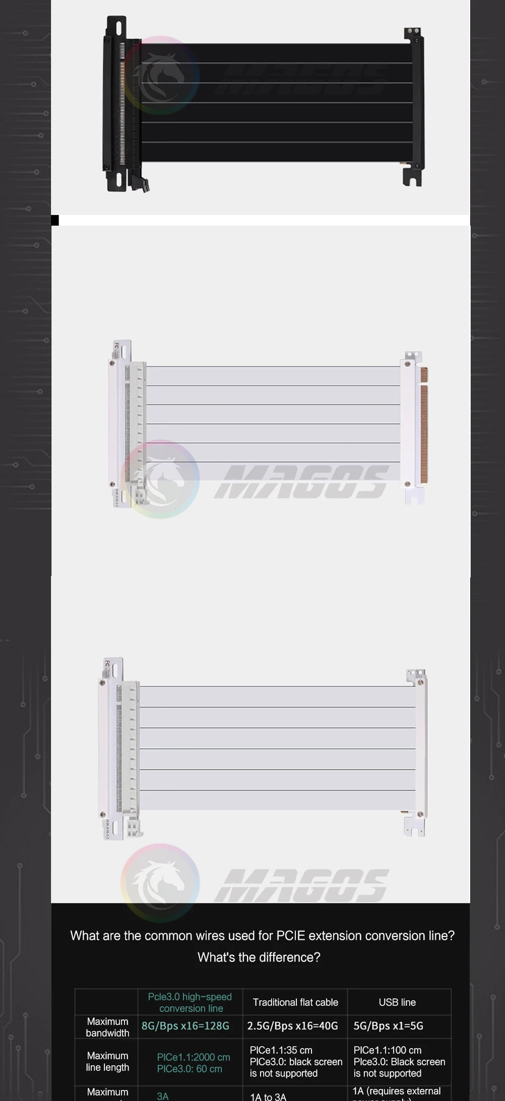 Comprar Cable elevador Dual inverso 4,0 PCIE X16, 18,5 cm, 20cm, Mini funda ITX, extensión de tarjeta de vídeo blindada, Flexible, sin pérdidas, negro/blanco