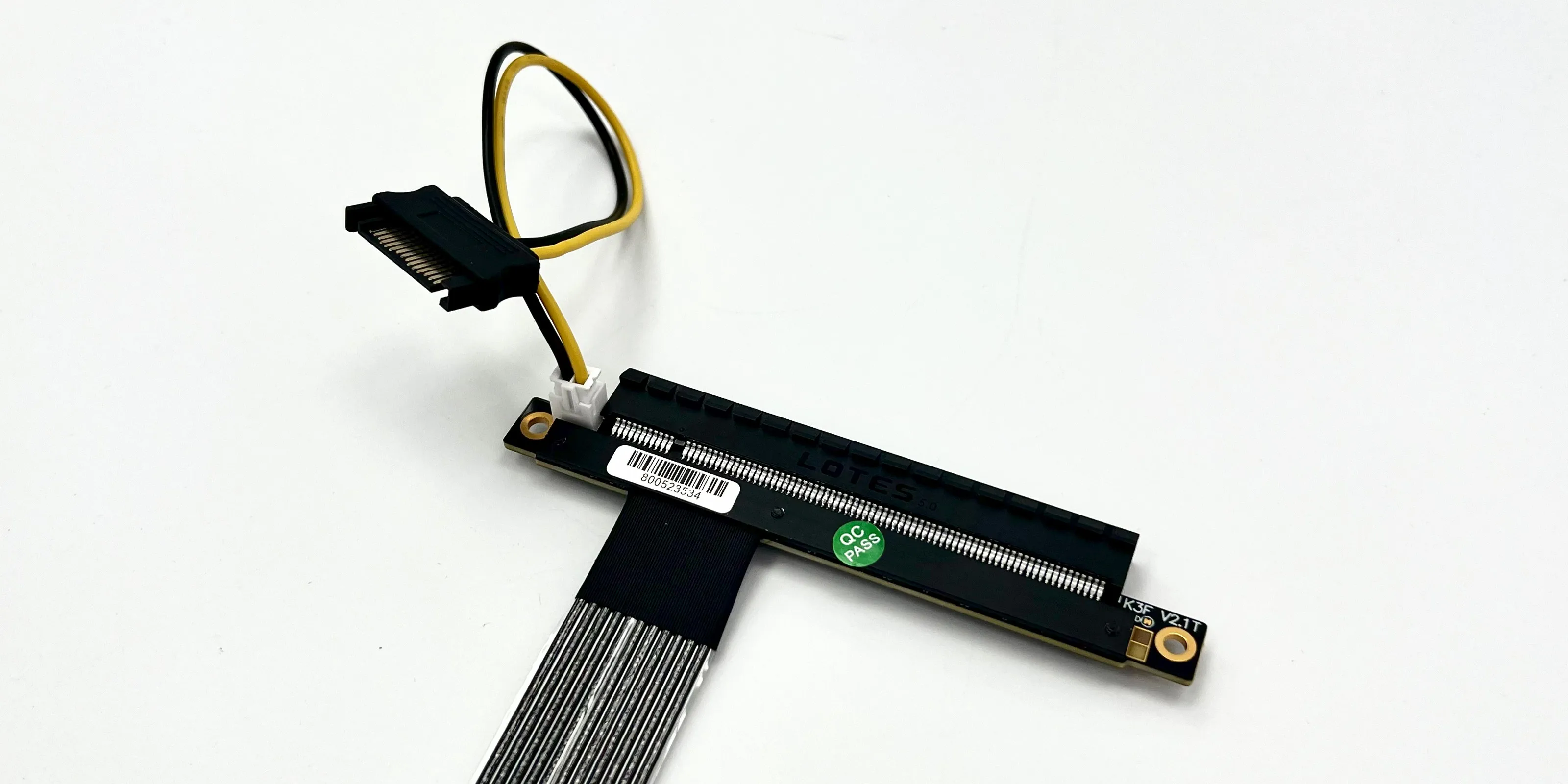El cable es el cable dedicado PCIe de quinta generación desarrollado independientemente por ADT, disponible en negro y plateado.