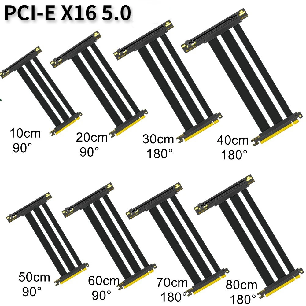 Cable elevador PCIe 5,0, extensor elevador GEN 5x16 PCI Express, adaptador elevador GPU flexible de alta velocidad para montaje vertical de tarjeta gráfica [PCIE 5,0] [ 10cm-100cm 90 ° 180 °] Color negro/blanco