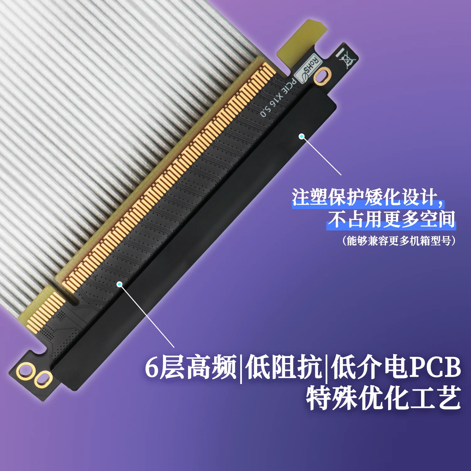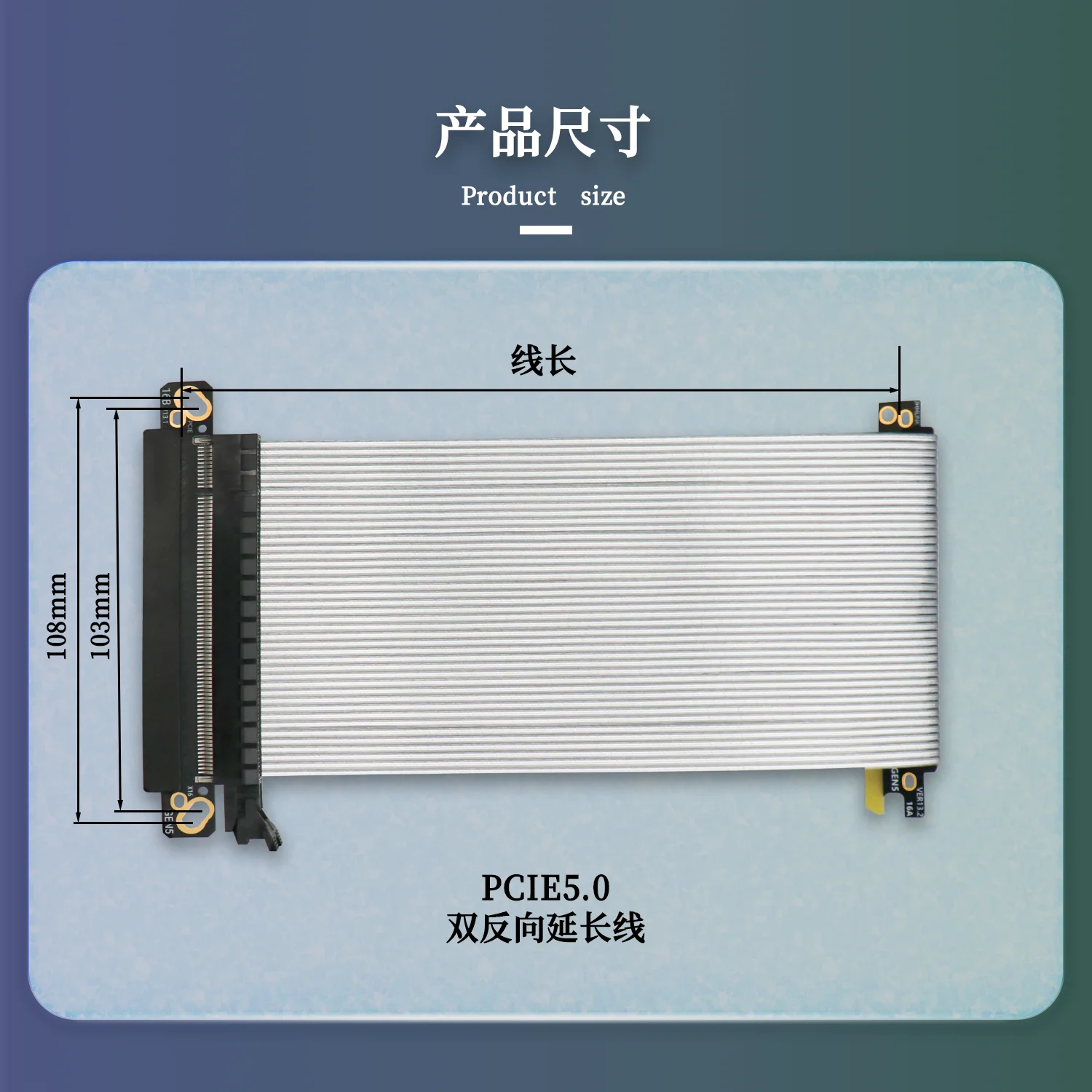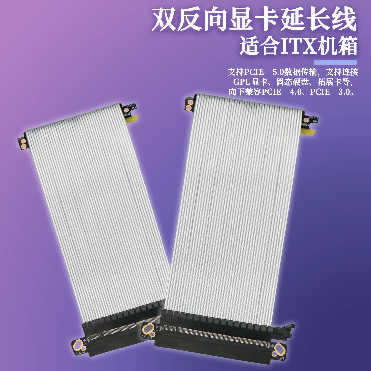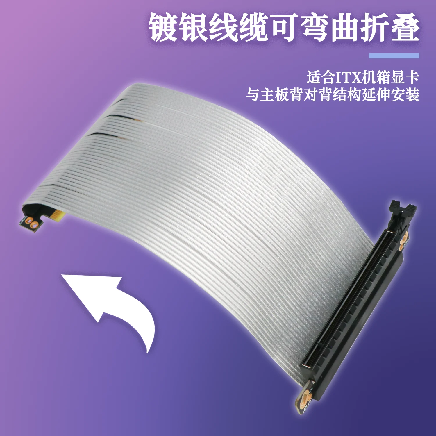 Cable elevador PCI E PCIe 5.0 X16 [RTX5090 RTX5080 RTX4090] PCI Express Gen5 de doble inversión blindado plateado para servidor ITX