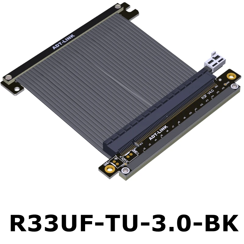 ADT R33UF-TU PCIe 16x tarjeta gráfica Cable de extensión PCI-E X16 3,0 Full Speed plateado negro para ITX A4 chasis doble reverso