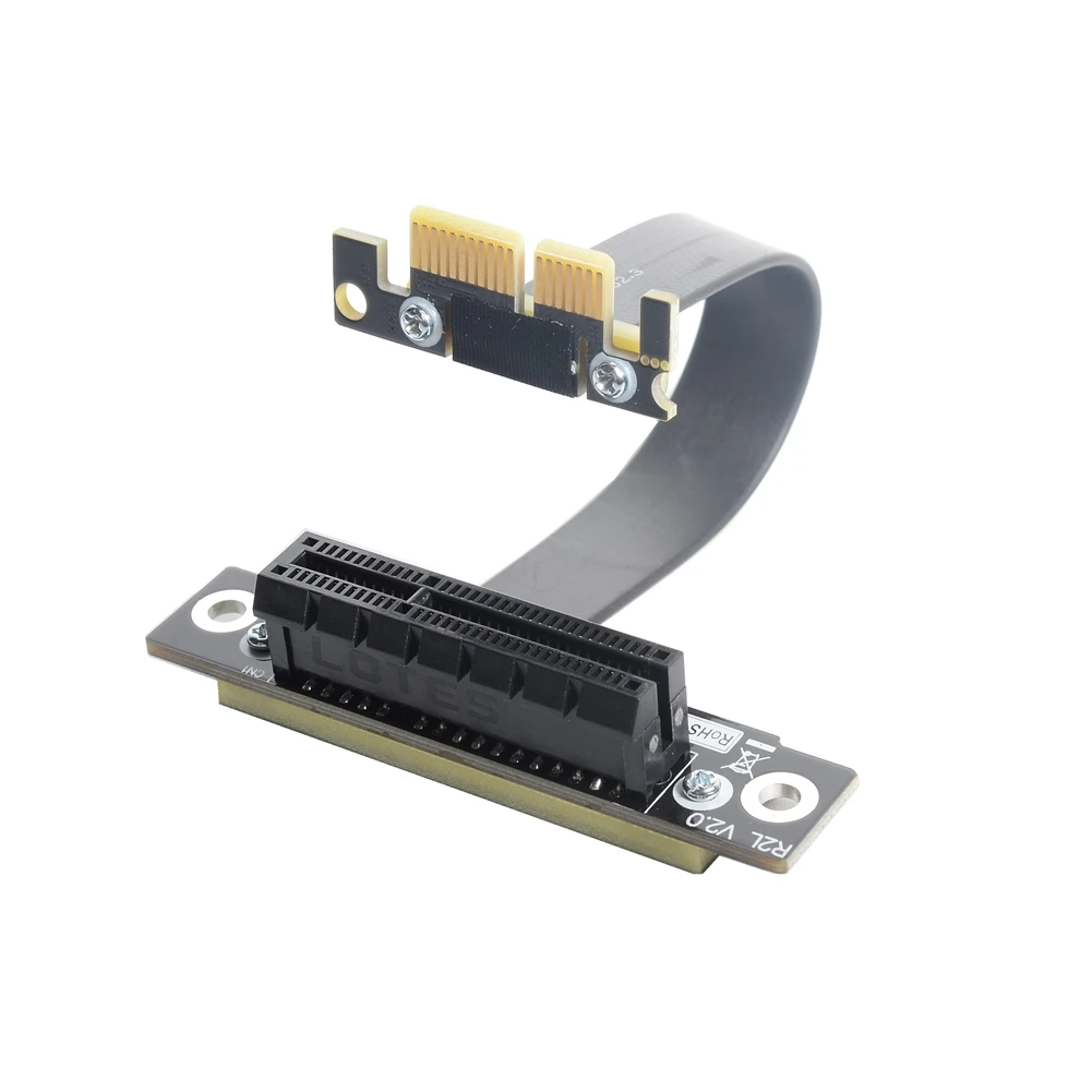 Nombre del producto: PCI-E X1 a X4 giro 90 grados vertical cable de extensión de doble ángulo recto