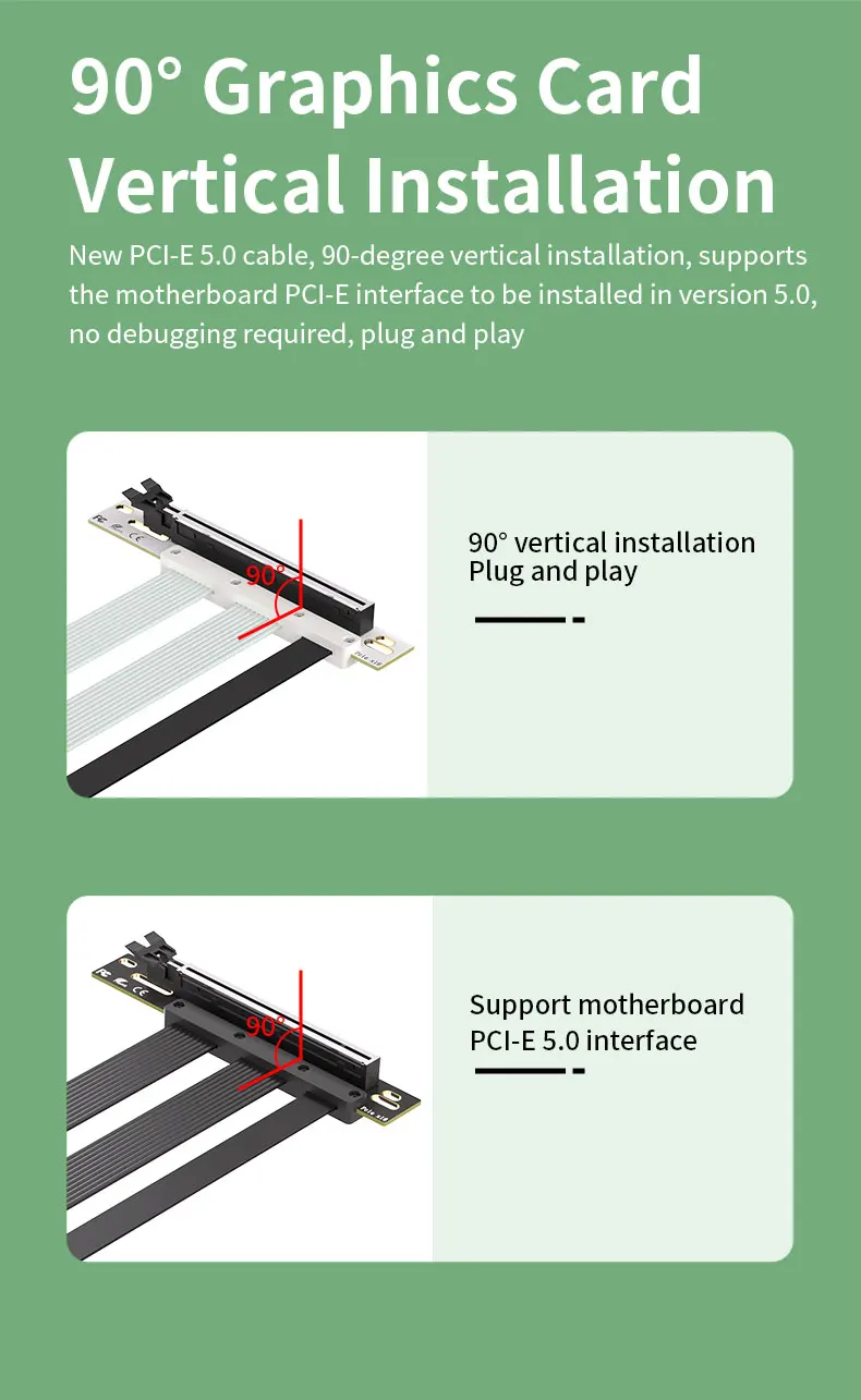 Cable elevador PCIe 5,0 X16, extensión GPU con ranura de 90 grados para RTX 5090/4090 y RX 7900 XTX, plataforma de minería, WRX80/TRX40, 15cm/18cm/20cm
