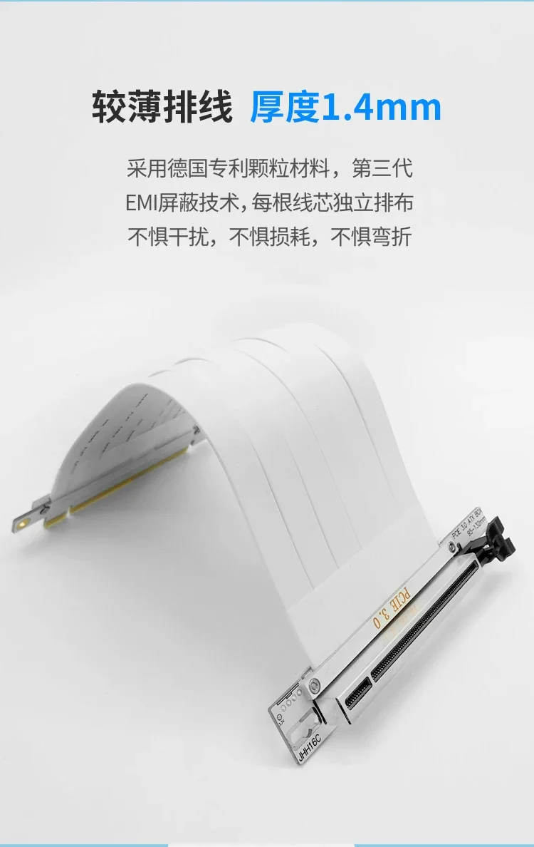 1.Ventajas del cable: utilizando el cable importado de patente alemana, utilizando los conectores Lotes importados de Taiwán, admite alta frecuencia PCIe 3.0 X16 8G/bps transferencia estable.