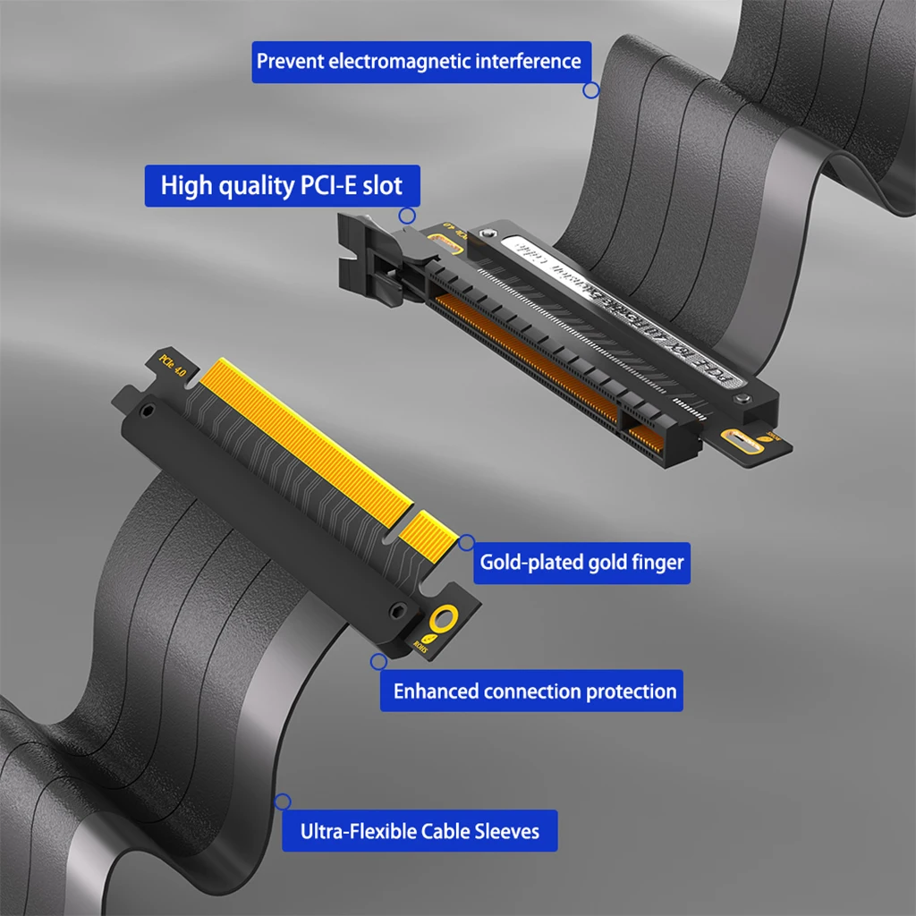 2. Cable plateado importado con hasta 64GBS, en línea con el estándar de transmisión PCIE 4,0 y sigue siendo compatible con versiones anteriores con una velocidad de transferencia máxima. La fuente de alimentación mejorada de 12V con cable plateado de 12 pines ofrece 12V para satisfacer las necesidades de 4070 tarjetas gráficas de alta potencia.