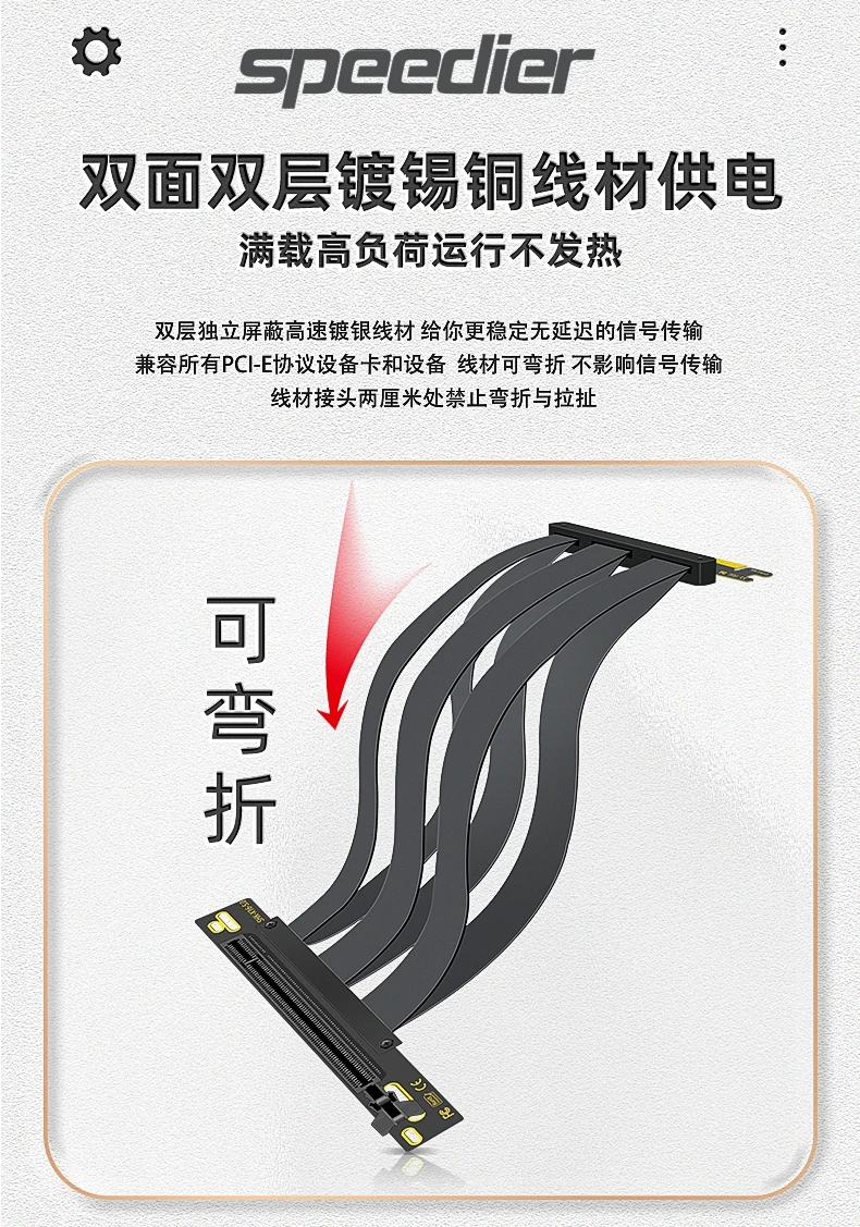 - 4. La versión 4,0 adopta la ranura chapada en oro 15U del protocolo 4,0 y el cable blindado independiente con cables dobles de tierra, y soporta hasta 1,8 metros a toda velocidad bajo el Protocolo 4,0