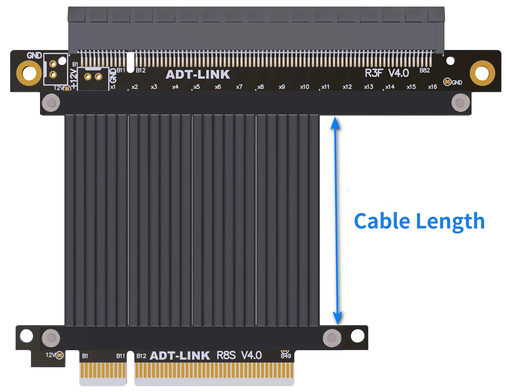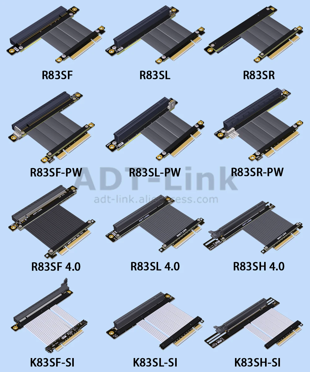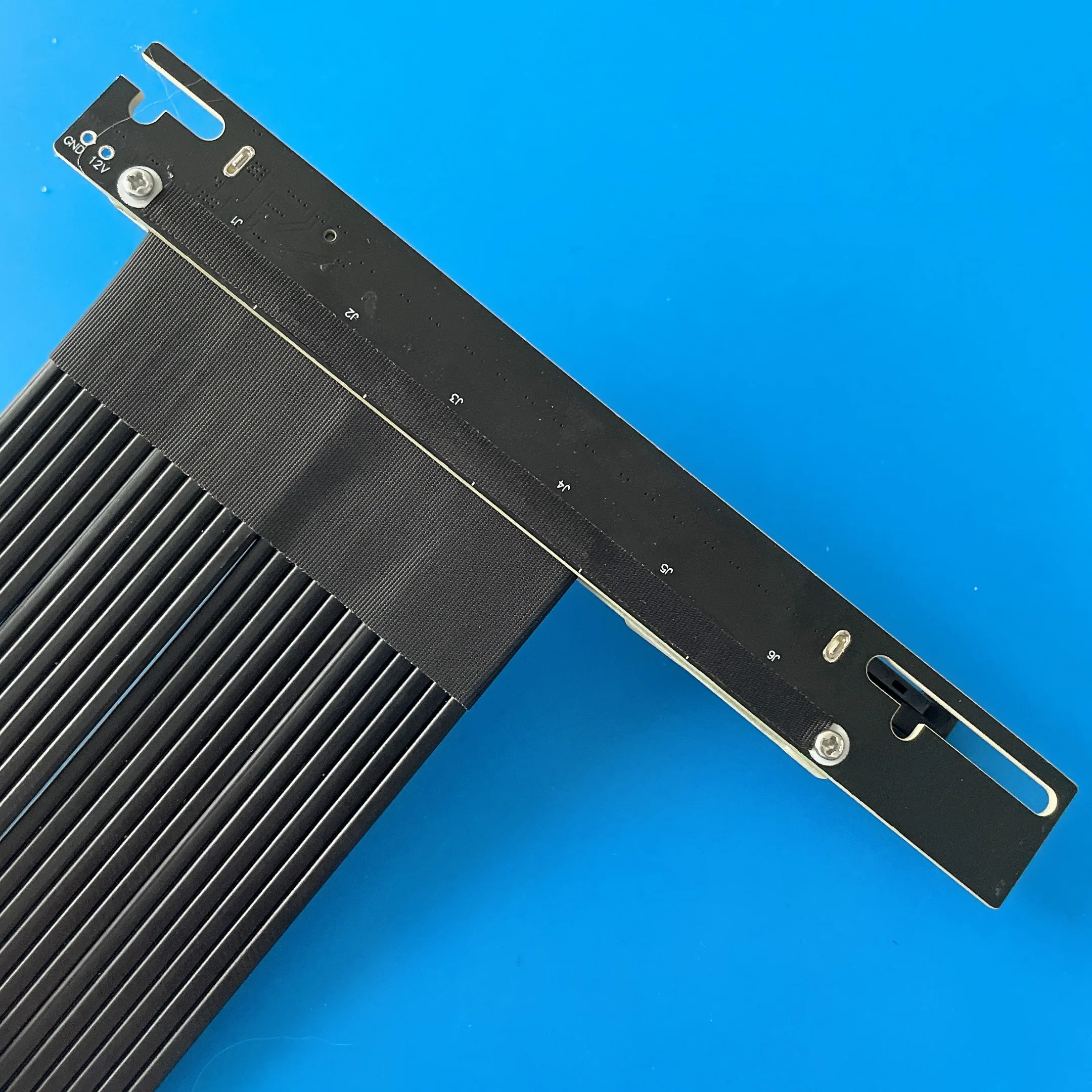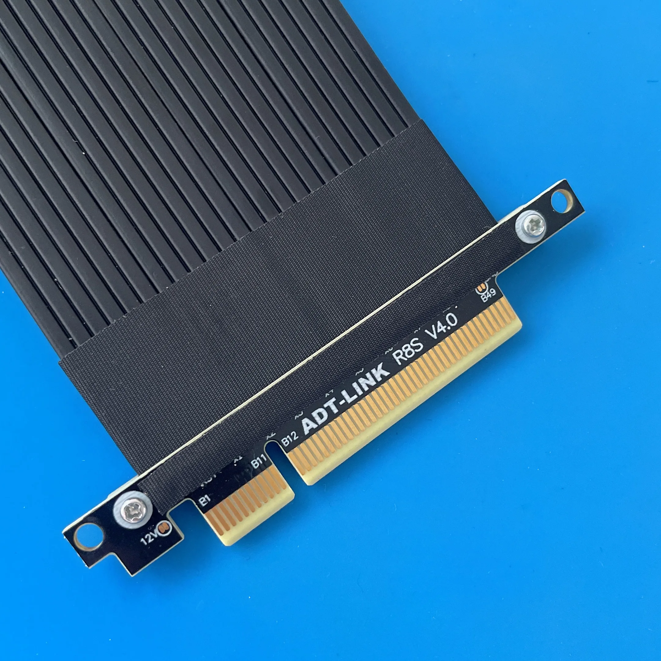 El cable es la cuarta generación de cable PCIe dedicado desarrollado y diseñado por ADT.El grosor del cable negro es de 1,3 mm, el cable plateado es de 1,4 mm y el cable azul es de 0,85 mm.El alambre se puede doblar y doblar sin afectar el uso.