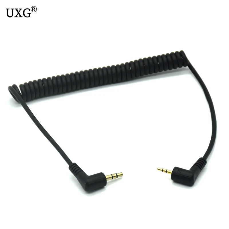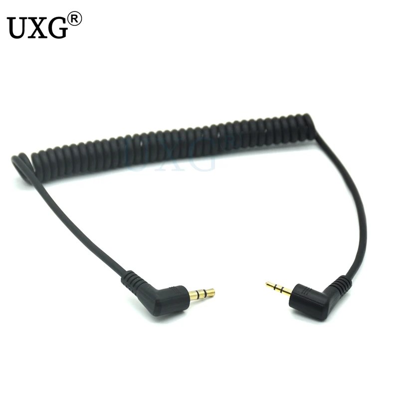 Comprar Cable en espiral de 3 polos macho a 3,5mm, 90 grados, 2,5mm, Audio estéreo, AUX, Mini resorte
