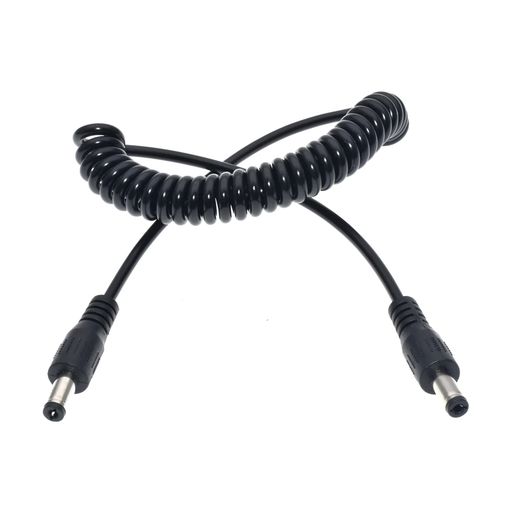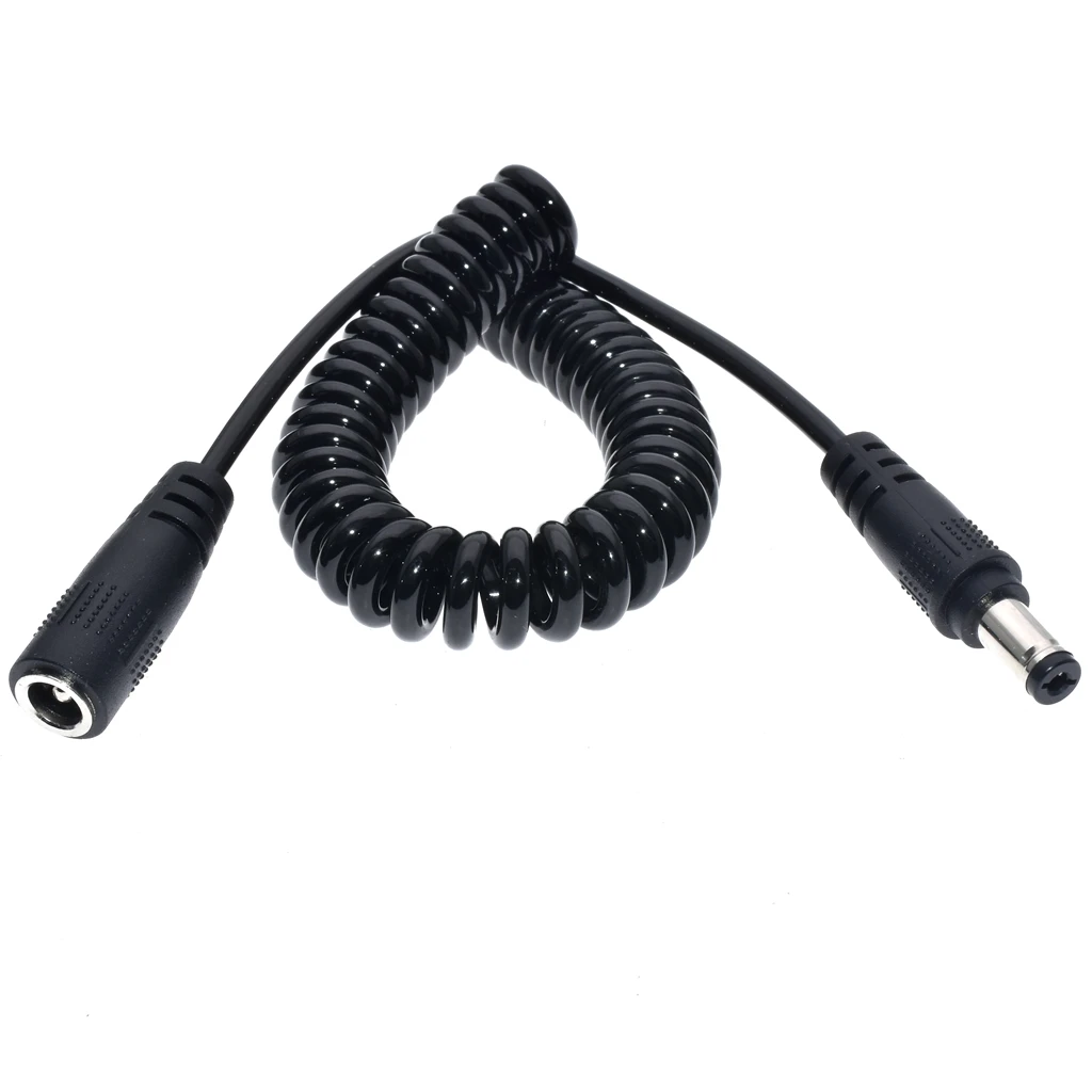 Cable enrollado de alimentación de enchufe macho a hembra de CC de 5,5 mm x 2,1 mm, cable de resorte de extensión de CC de 5,5 x 2,1 mm para tira de LED, CCTV, estirado hasta 1,5 M