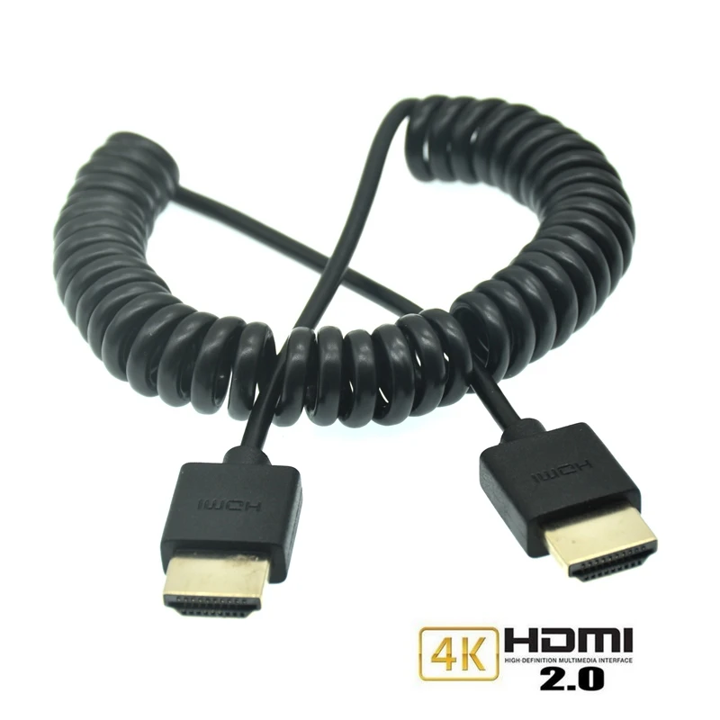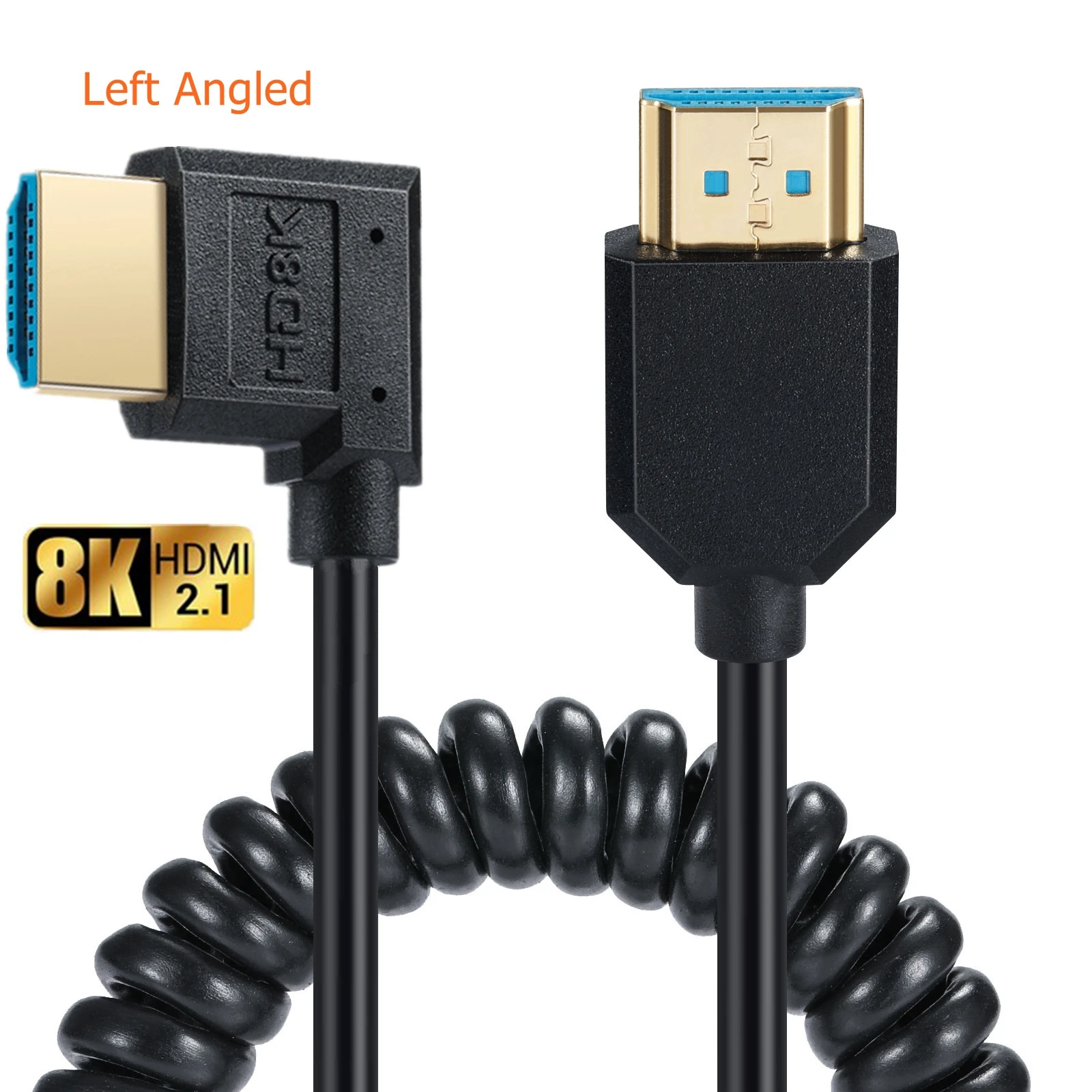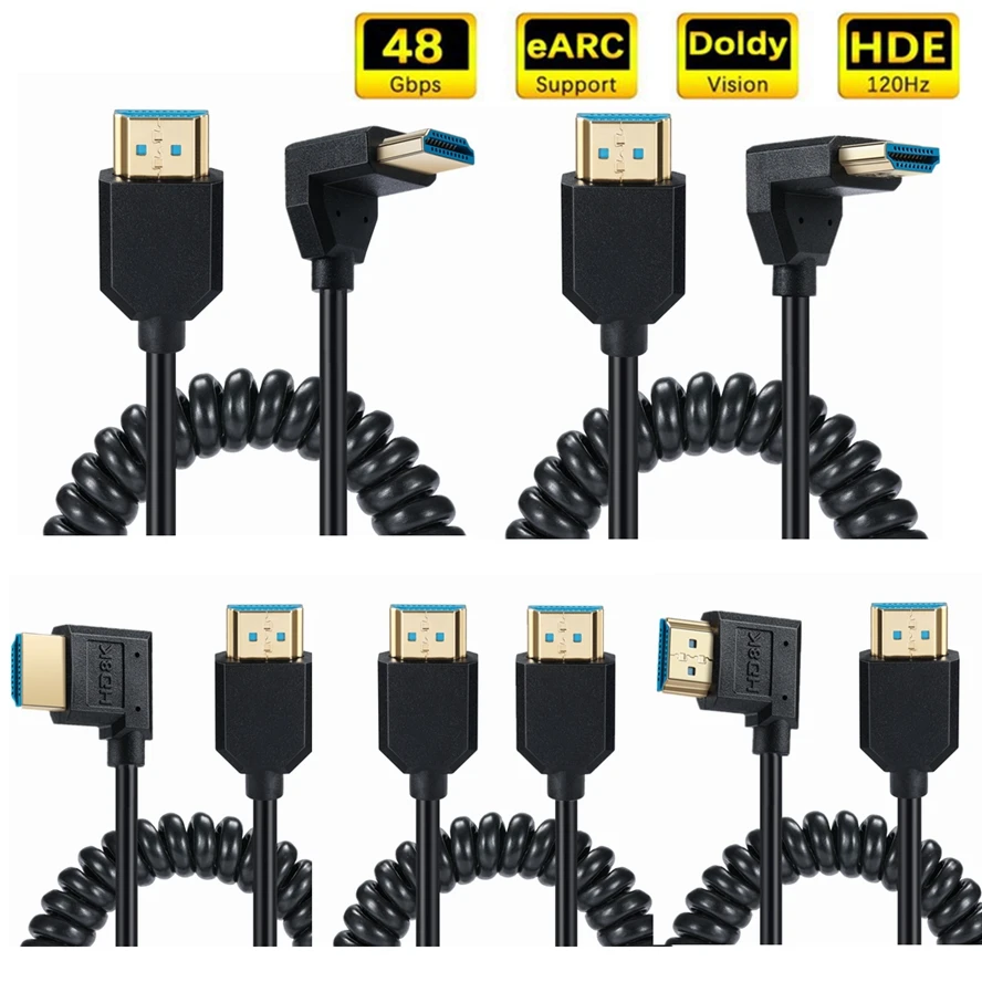 Comprar Cable en espiral de ángulo de 90 grados OD 4,0mm, Compatible con HDMI, macho a macho, resorte HD, 8k @ 60hz, HDMI-2.1 para TV, ordenador y cámara