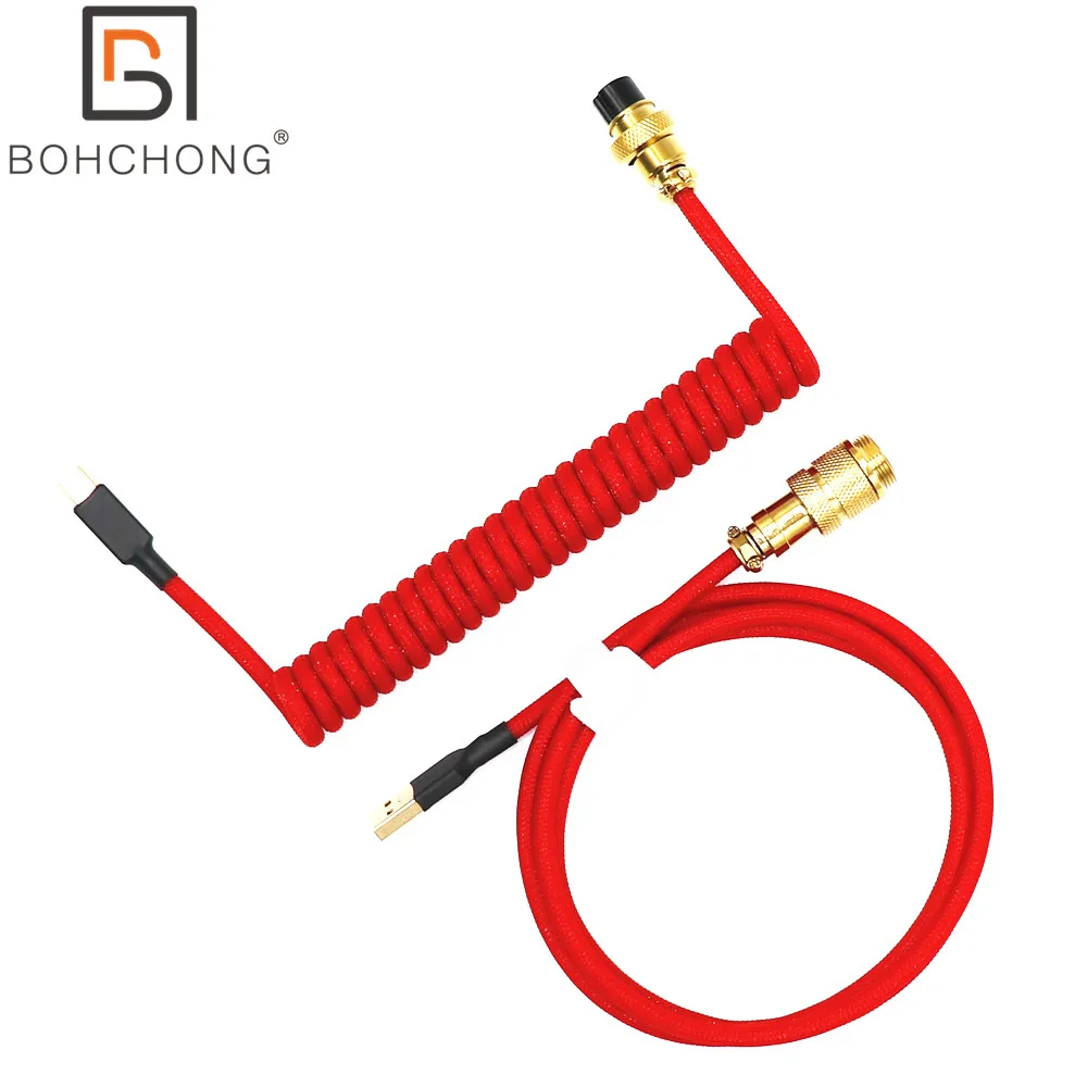Comprar Cable en espiral de doble manga USB a tipo C, Micro Mini 5P para teclado mecánico dorado GX16 aviador, hecho a mano