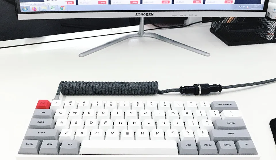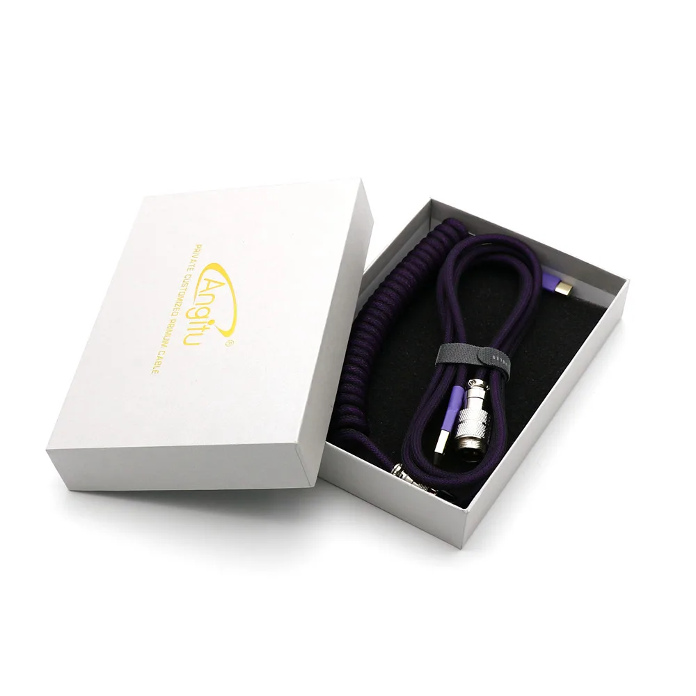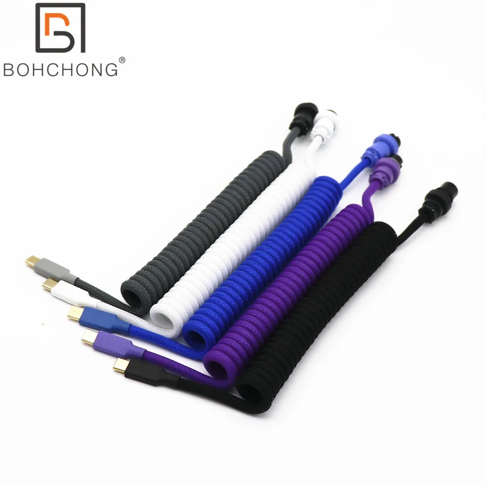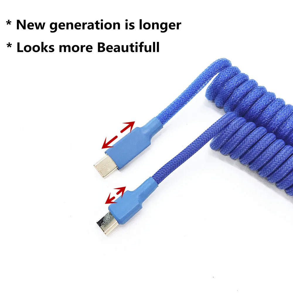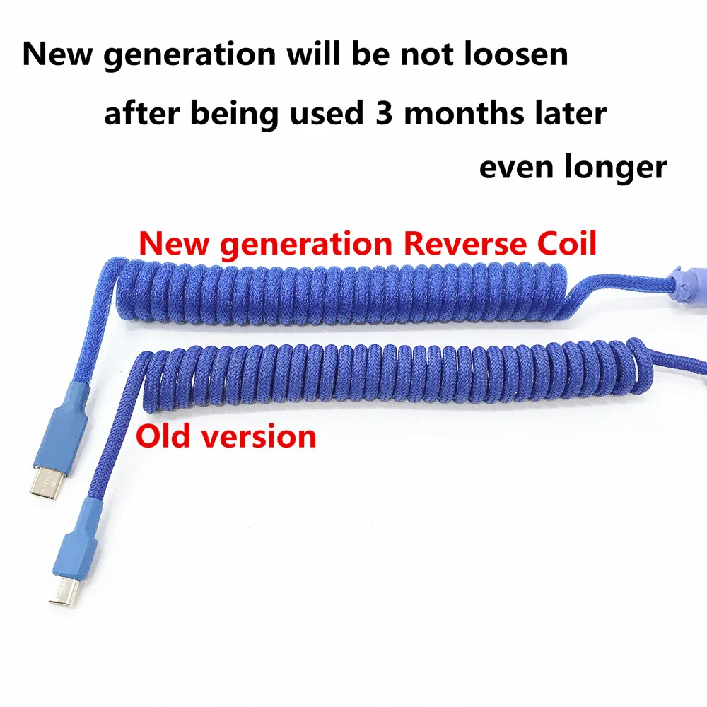 Not Loosen Thicker OD 22MM Reverse Coil Keyboard USB Type C Coiled Cable Elastic L Shape Double Sleeved Mini Micro GX16 Aviator Cable