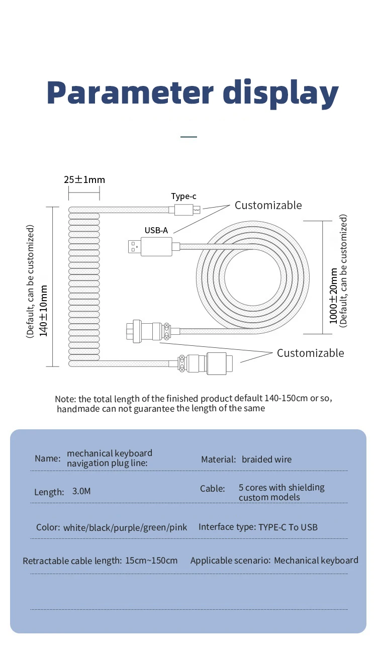 Comprar Cable en espiral para teclado mecánico, Cable tipo C, puerto USB, aviador, accesorios para teclado de ordenador de escritorio y juegos, 1 unidad