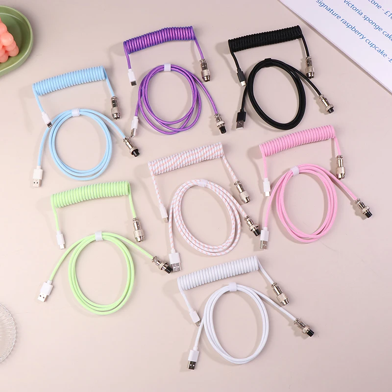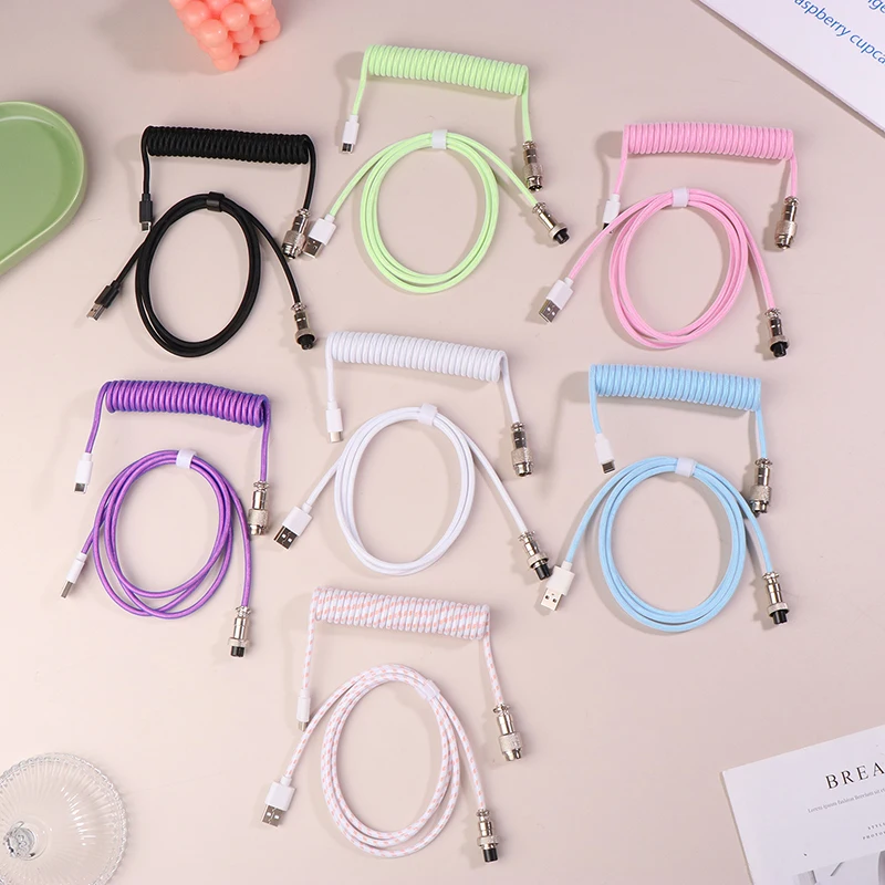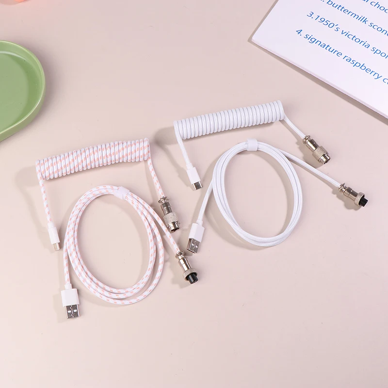 Comprar Cable en espiral para teclado mecánico, Cable tipo C, puerto USB, teclado mecánico, aviador, ordenador de escritorio, conector de aviación