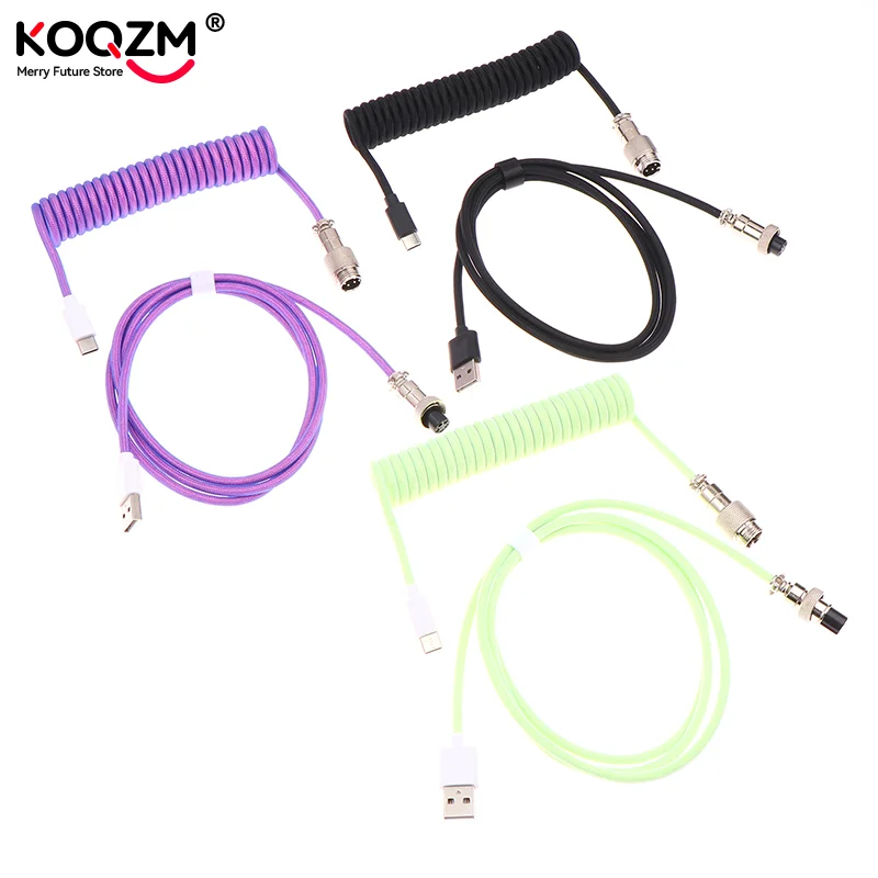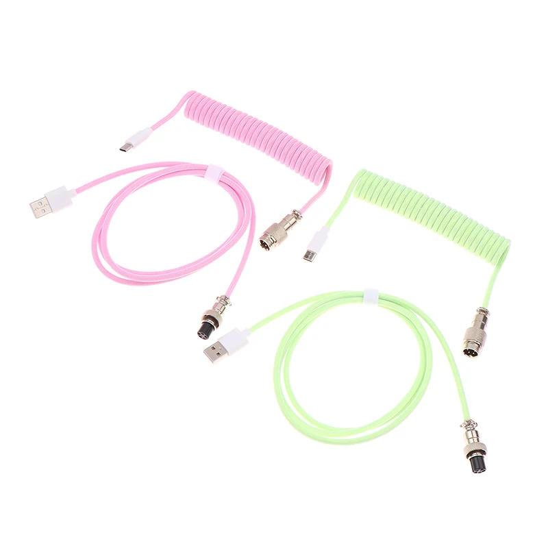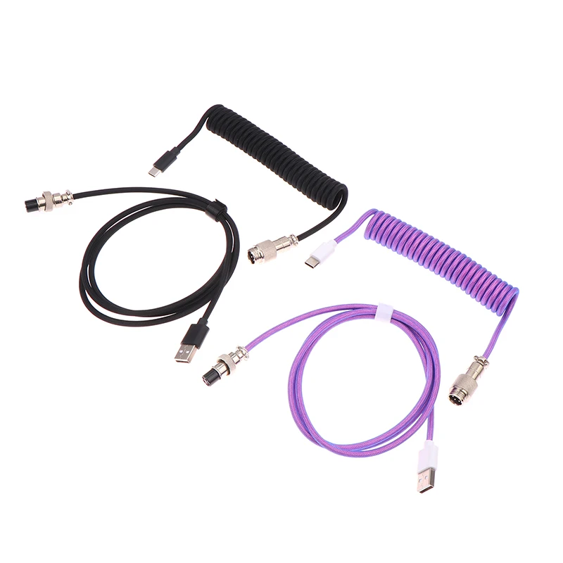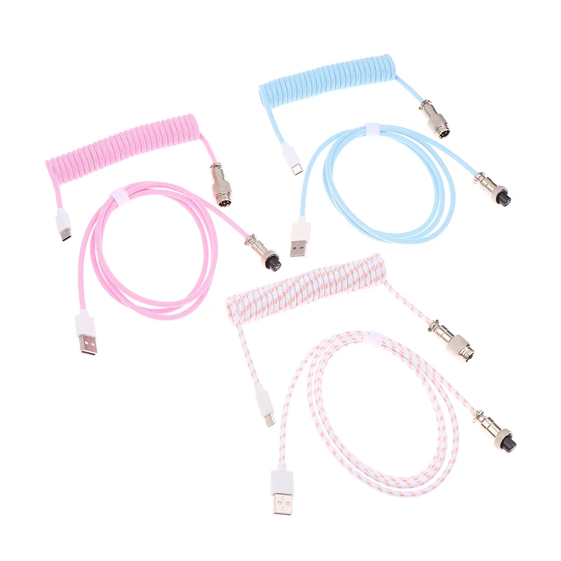 Comprar Cable en espiral para teclado mecánico, Cable tipo C, puerto USB, teclado mecánico, aviador, ordenador de escritorio, conector de aviación