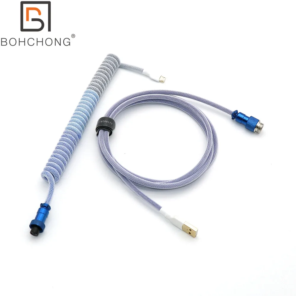 Comprar Cable en espiral de teclado de varios colores personalizado, Mini Micro Cable tipo C con funda de doble capa en forma de L para teclado, Cable espiral USB