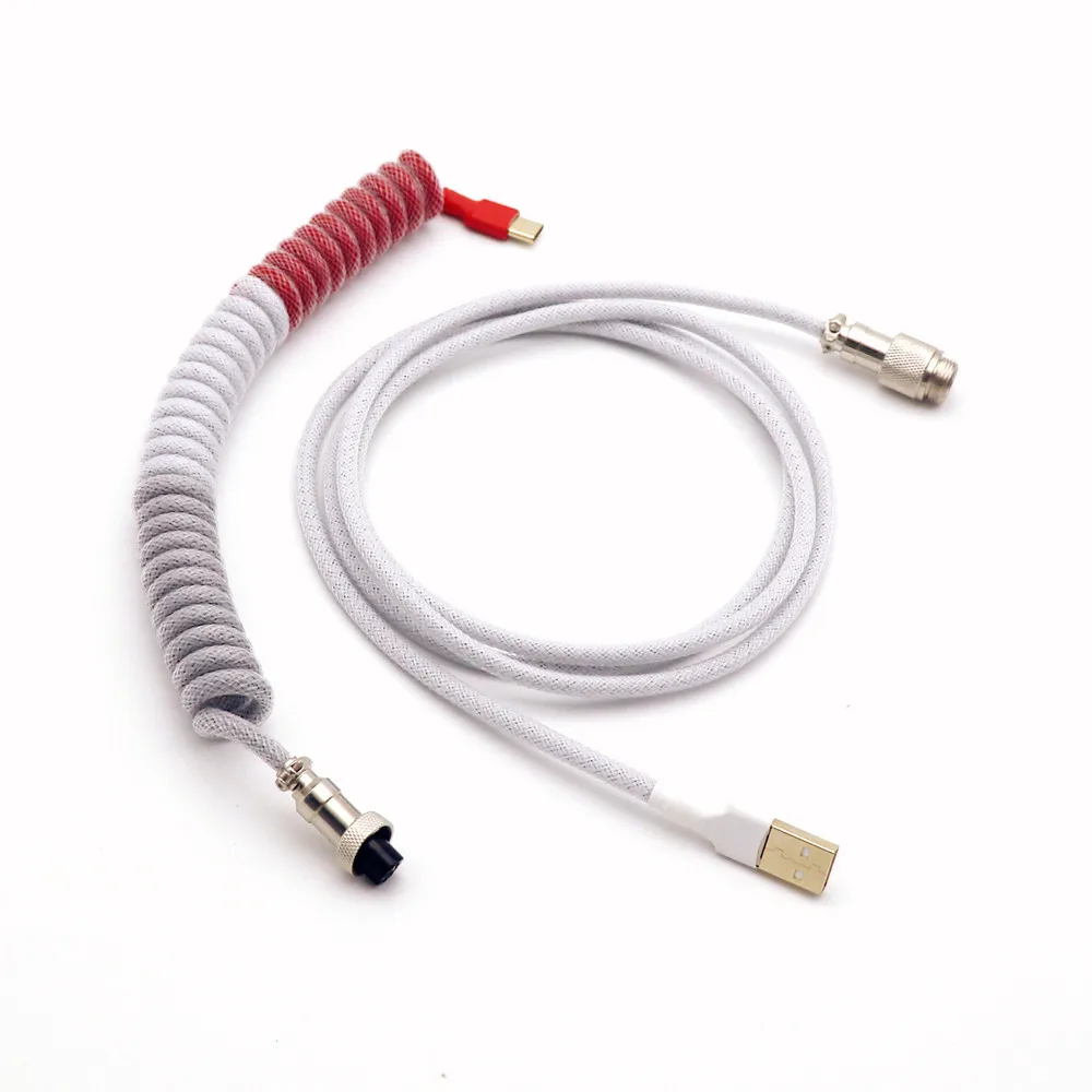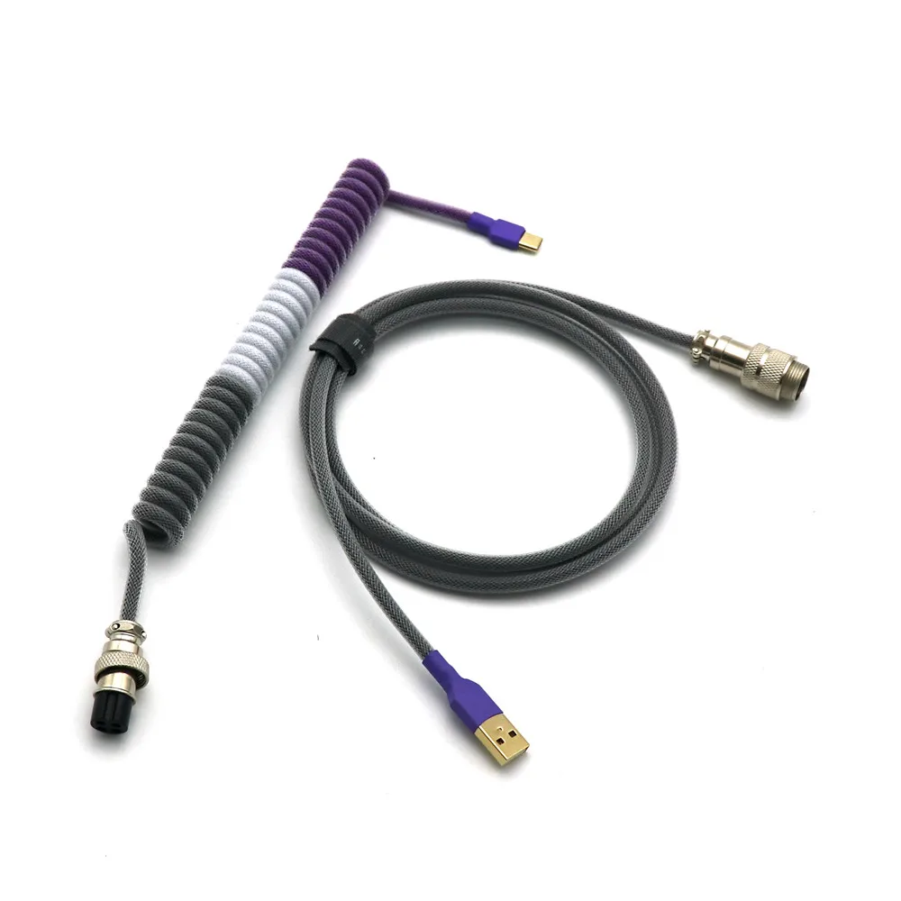 Mini microcable tipo C enrollado para teclado con funda de doble capa en forma de L de varios colores personalizados para Cable en espiral USB para teclado