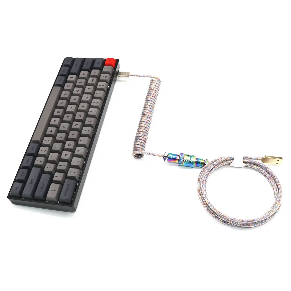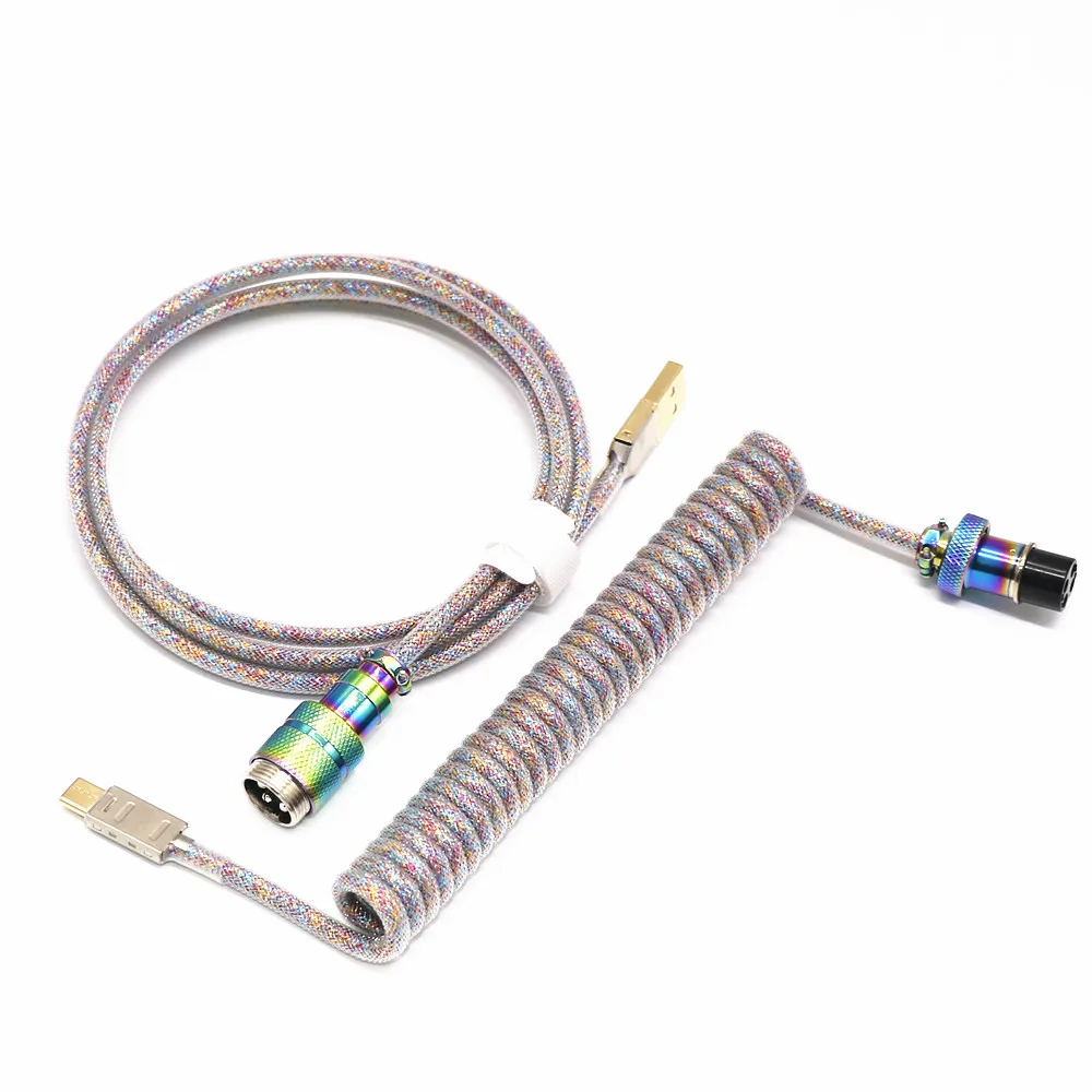 Cable en espiral personalizado hecho a mano en forma de Z de doble funda USB a tipo C Cable en espiral Micro Mini 5P para teclado mecánico Aviador dorado GX16