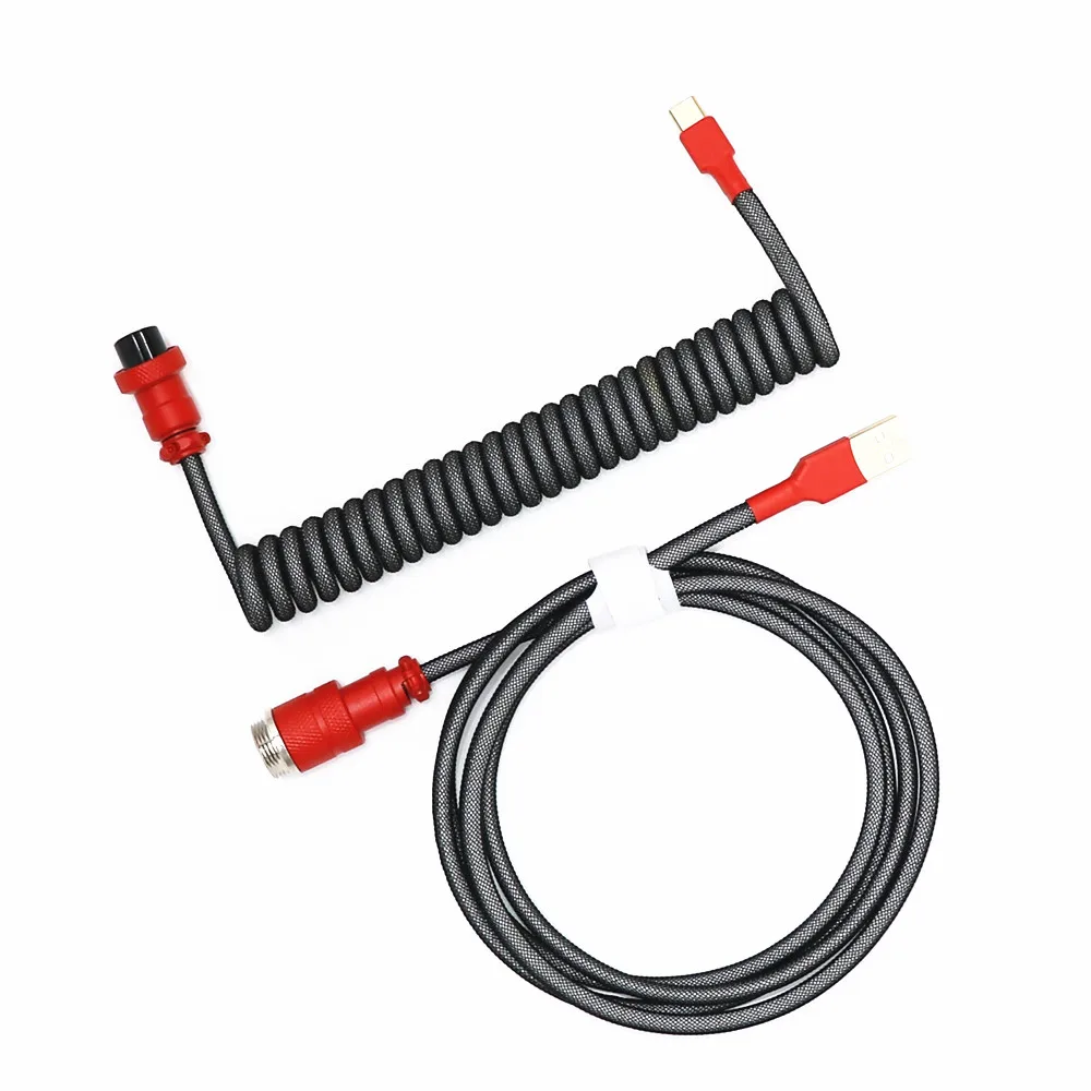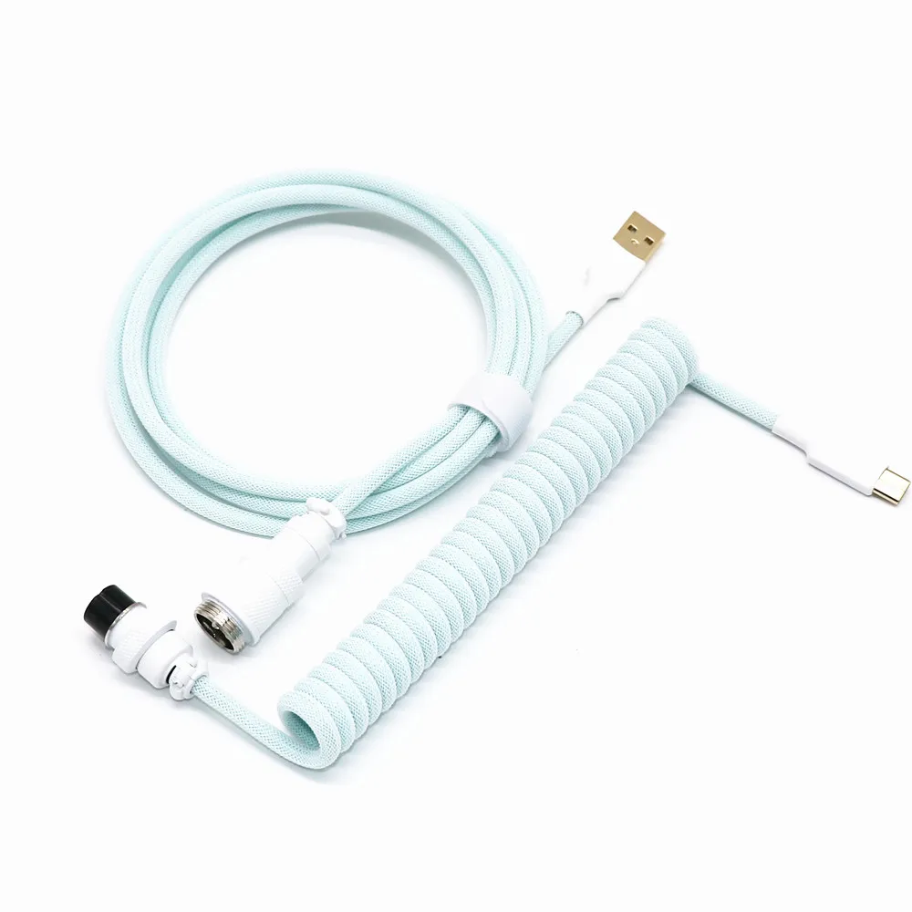 Cable en espiral personalizado hecho a mano en forma de Z de doble funda USB a tipo C Cable en espiral Micro Mini 5P para teclado mecánico Aviador dorado GX16