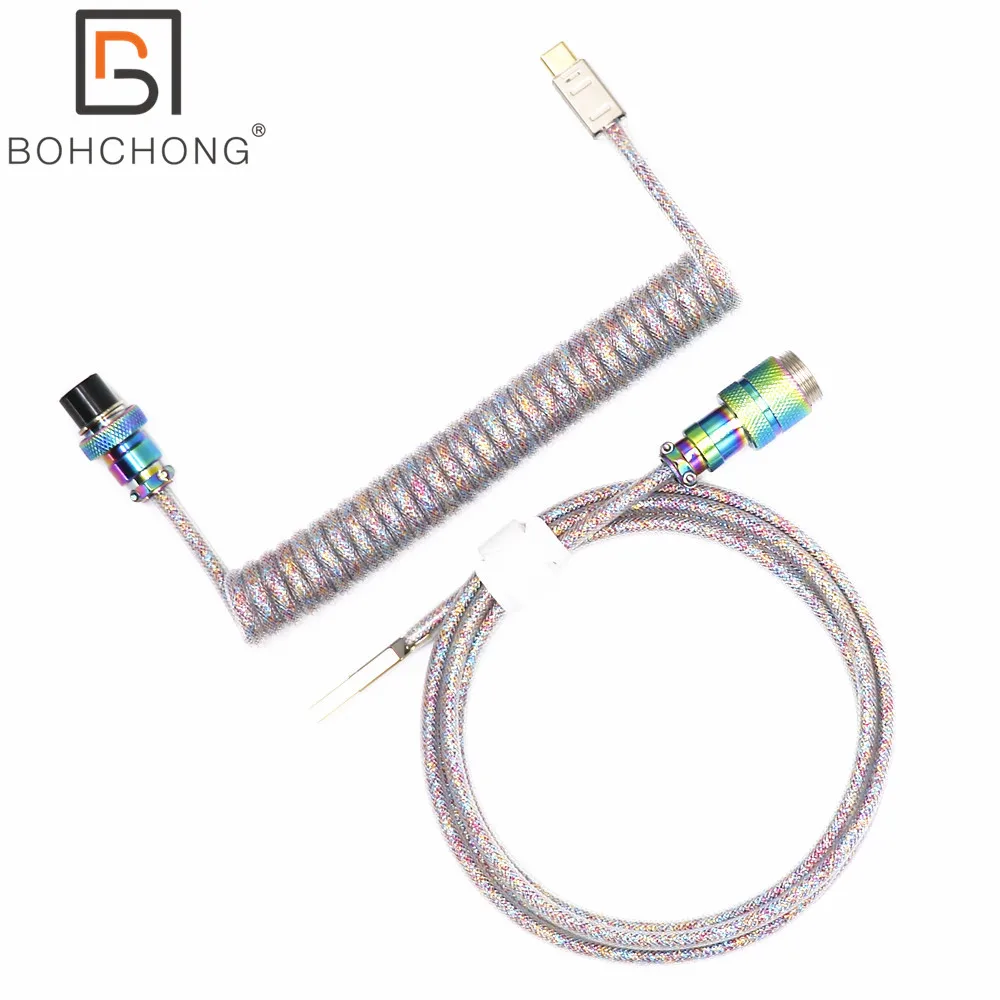 Comprar Cable en espiral USB a tipo C, colorido brillante, hecho a mano, en forma de Z, Micro Mini 5P para teclado mecánico, aviador GX16