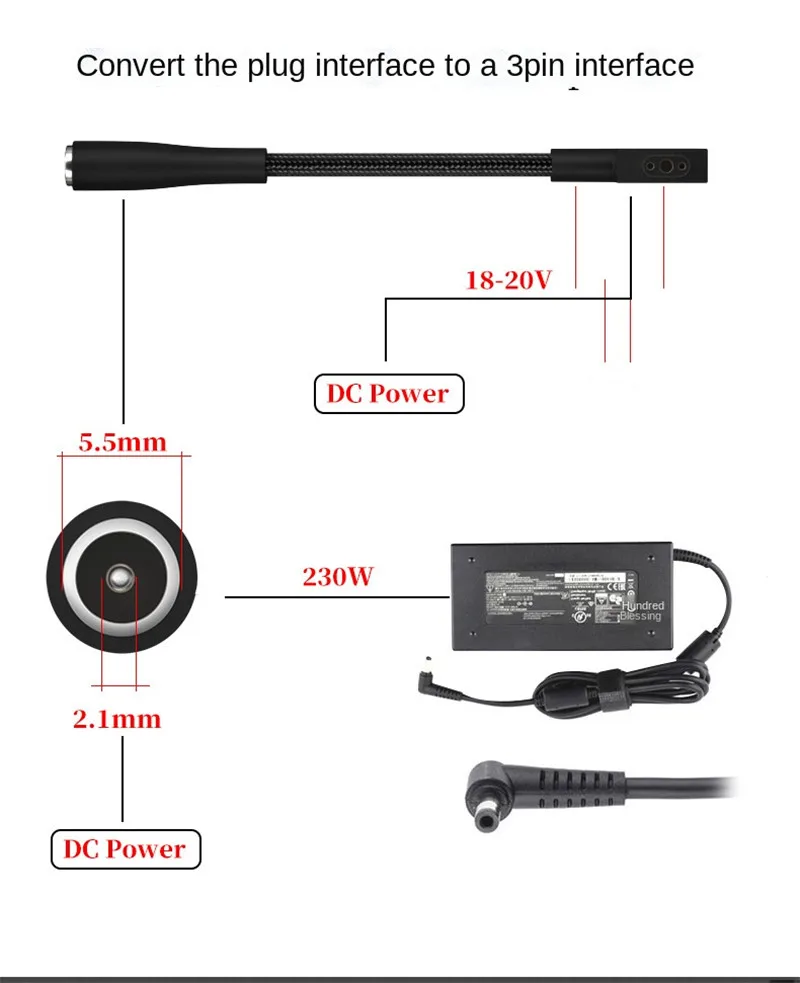 El adaptador de corriente DC5.5 * 2,5mm debe ser 230W/160W o superior a la potencia Razer 3Pin.