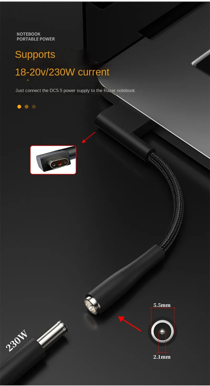 Cable de enchufe de alimentación DC 5,5x2,5mm 2,1mm, entrada a 3 pines, Compatible con Razer Laptop Blade Pro 17 15, Compatible con adaptador de carga de 230W/160W