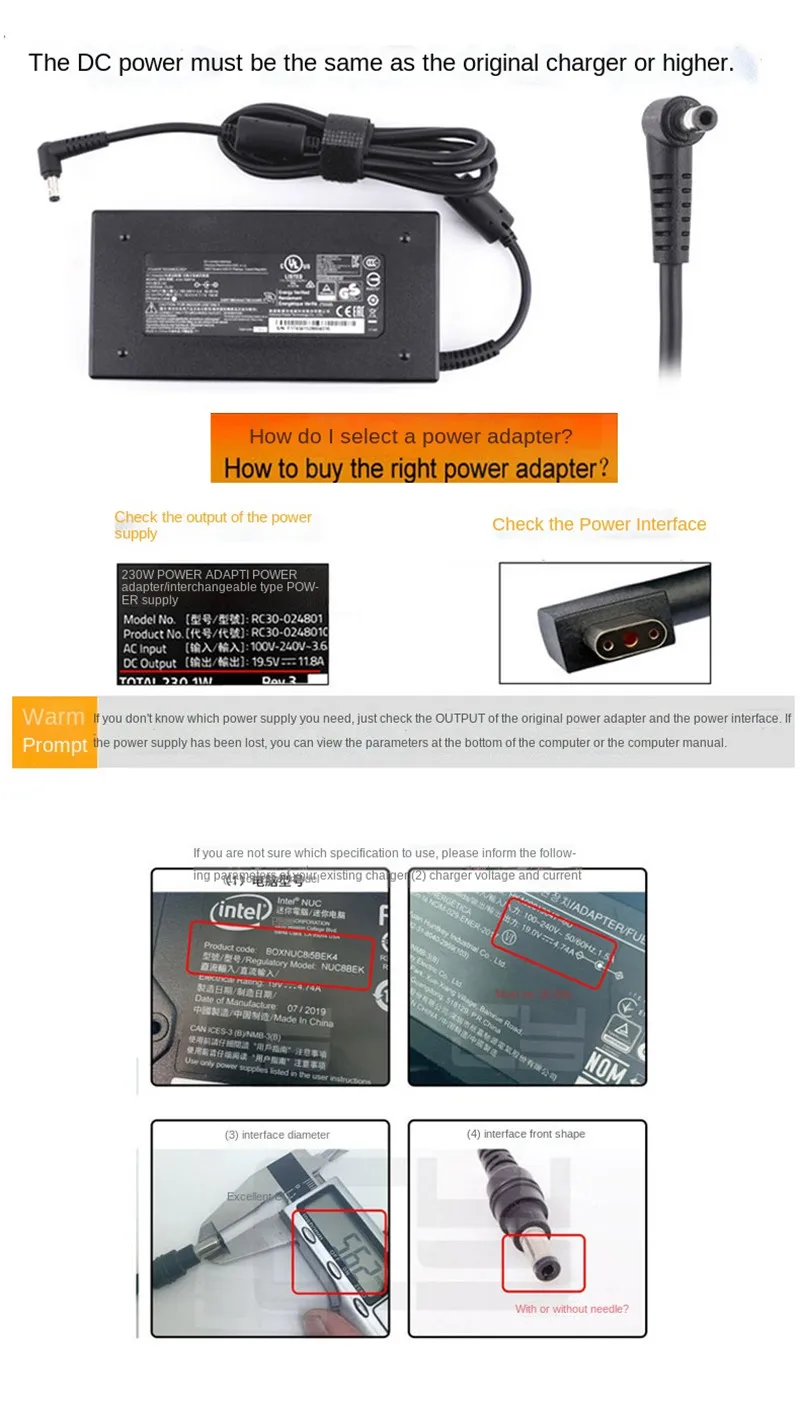 Compatible con cargador Razer Blade de 230W, compatible con Razer Blade 15 del modelo GTX1070/RTX2070/RTX2080 y Razer Blade Pro 17. (Consejos: ¡compruebe el tipo de conector antes de realizar un pedido!)