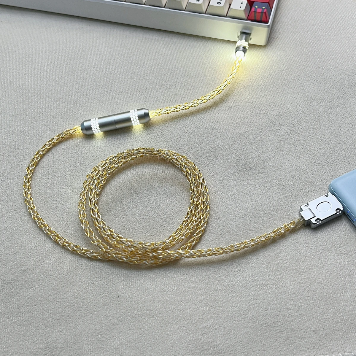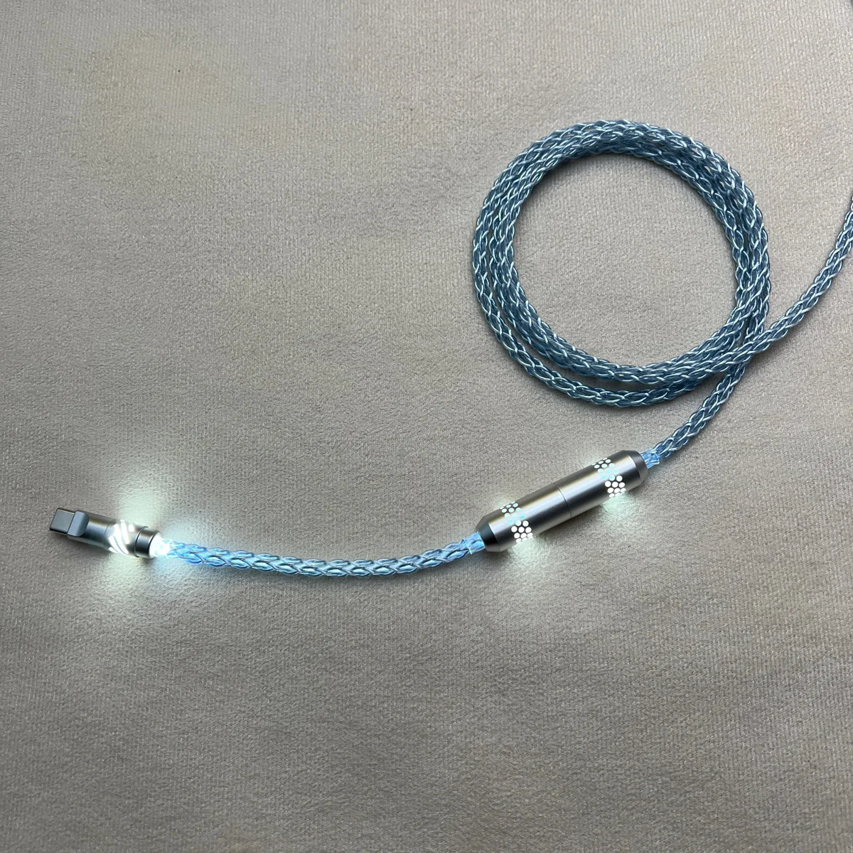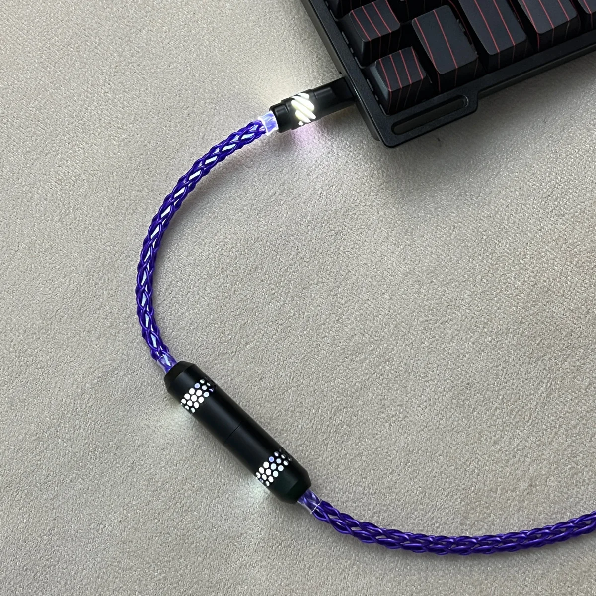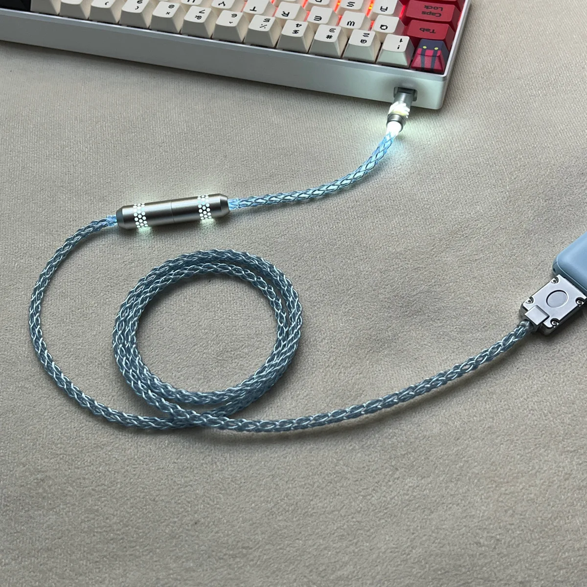 Comprar Cable de enchufe de aviación de cobre y cristal único tipo C hueco luminoso personalizado Cable de datos de teclado de eje magnético de 8K Cable de carga