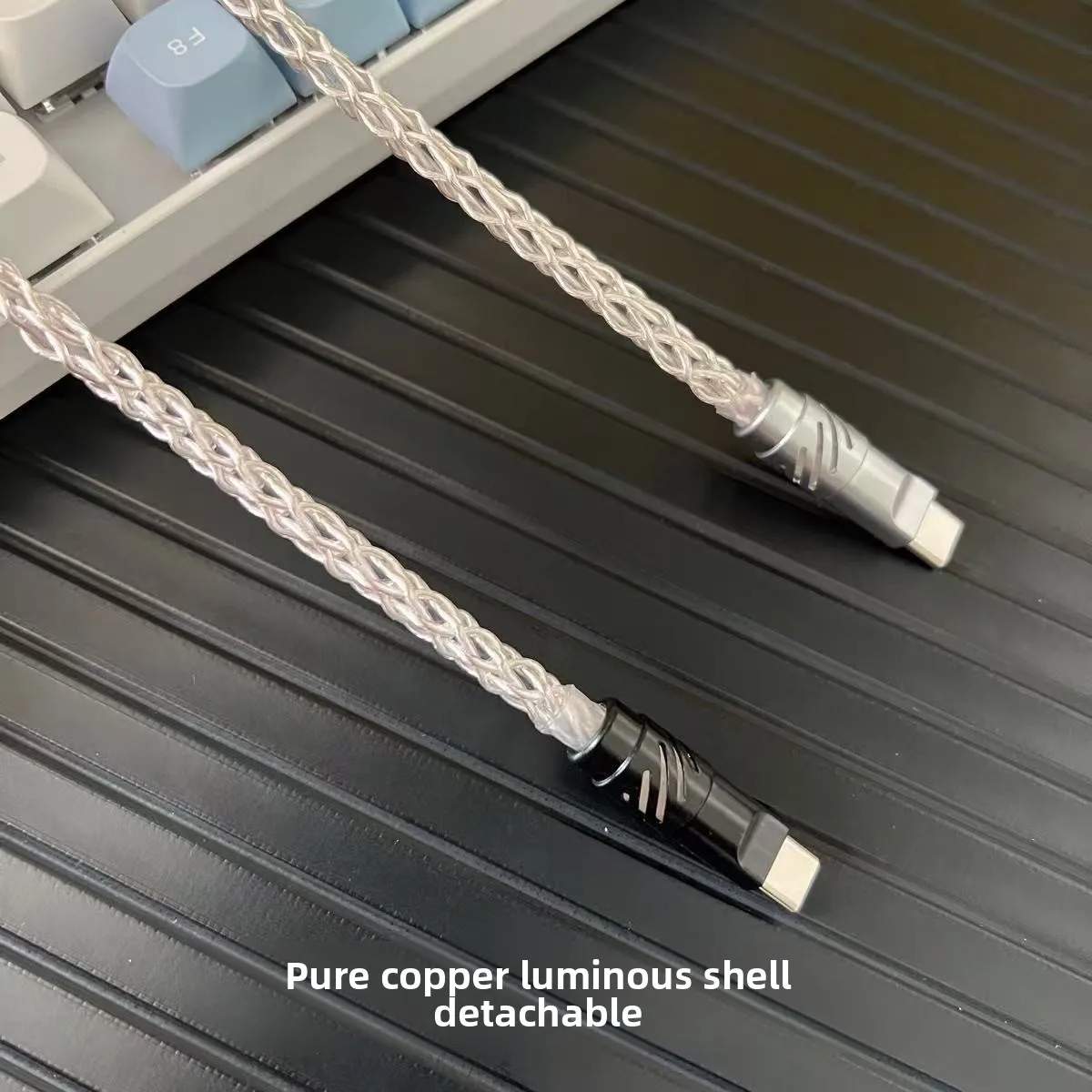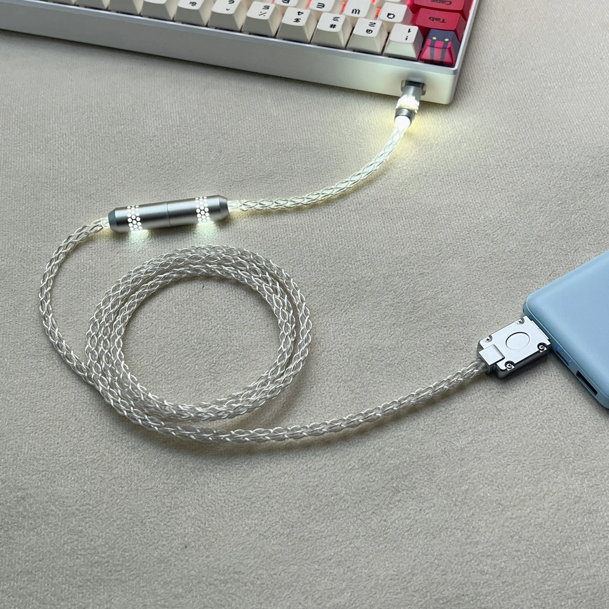 Cable de enchufe de aviación de cobre de un solo cristal tipo C de luz blanca hueca luminosa personalizada Cable de carga de cable de datos de teclado de eje magnético 8K