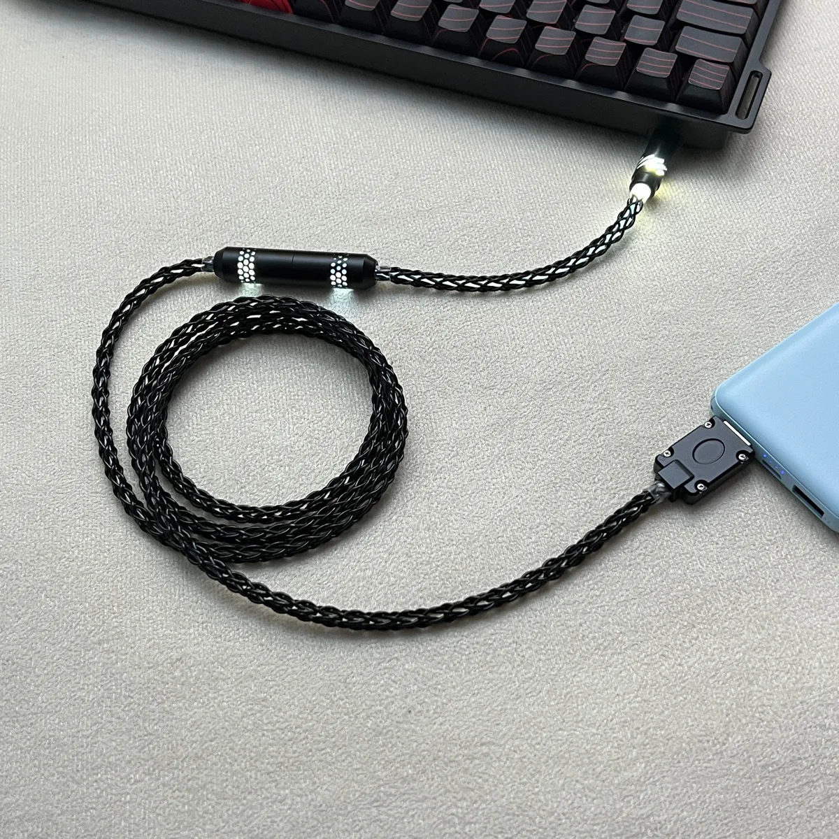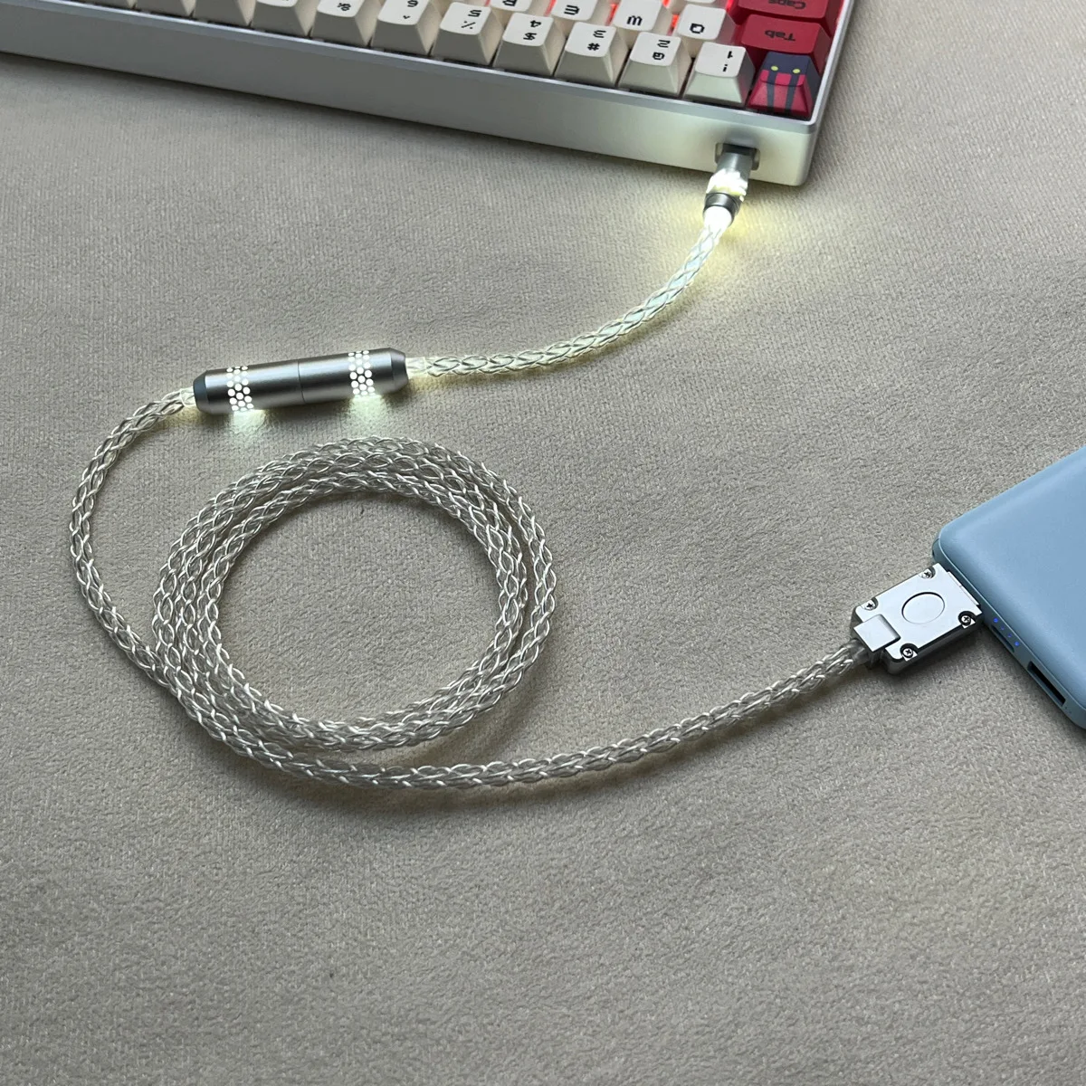 Cable de enchufe de aviación de cobre y cristal único tipo C hueco luminoso personalizado Cable de datos de teclado de eje magnético de 8K Cable de carga