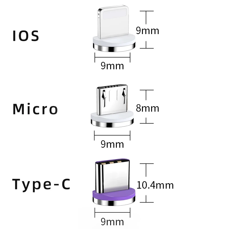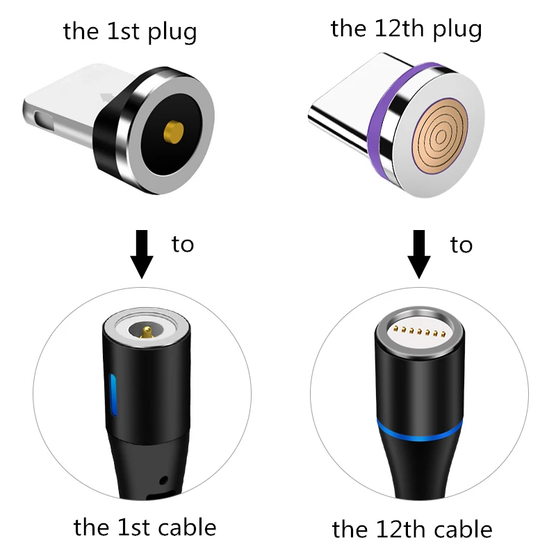 *Debe serUtilizado conUSB redondo de 7 contactosCable de datos magnéticos, y¡No se puede utilizar con otros contactos, formas y cables de datos PD! * La carga rápida 3A debe coincidir con el cargador qc3.0. Cargador original. * Para iPhone se debe elegir el enchufe de iPhone (no el tipo c y Micro). *La interfaz micro es un trapezoide, y la interfaz typeC es una elipse. Estos dos no se pueden usar en común.